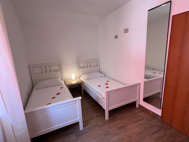 В наших апартаментах есть кондиционер, спутниковое телевидение, Wi-Fi, парковка на собственной территории, стиральная машина. Это включено в стоимость. У нас есть площадка для барбекю, которой наши гости могут пользоваться бесплатно, она включена в стоимость проживания. Наши апартаменты оборудованы всем необходимым для вашего отдыха. Они расположены на участке площадью 3500 м2. Квартира площадью 150 м², 2 спальни, кухня, столовая, ванная комната с душем, гостиная и терраса. Расстояние до моря прямо на берегу моря и в 100 м от моря. Я снимаю квартиру. Индира, Бепо, Грго, передвижной дом Лука и дом отдыха Индира.