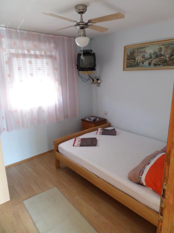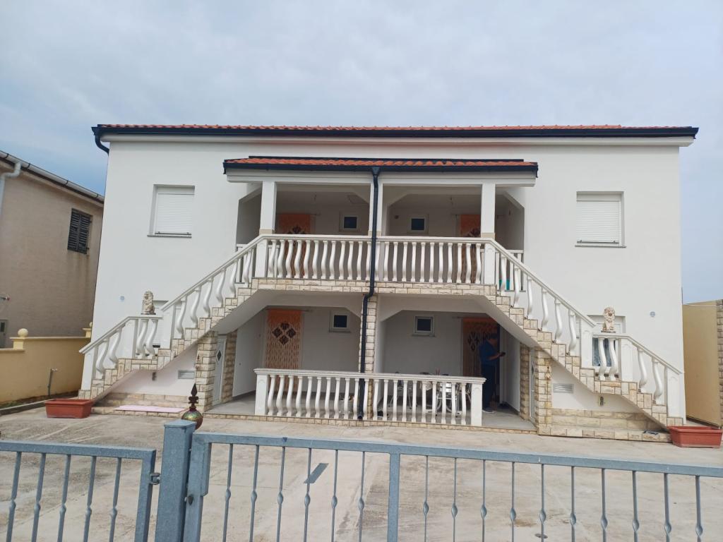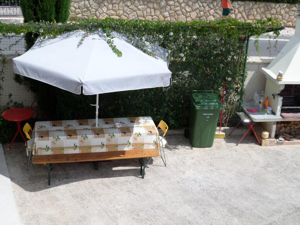 Дом состоит из 4 жилых помещений, по 2 на каждом этаже. Всего сдаются в аренду 3 квартиры: 2 на верхнем этаже и 1 в подвале. Все квартиры идентичны и имеют 2 спальни, террасу, прихожую, полностью оборудованную кухню и ванную комнату. В каждой квартире есть ЖК-телевизор со спутниковыми каналами и кондиционер. Для общего пользования имеется мангал и зона отдыха во дворе. Однако каждая квартира также имеет собственную террасу/балкон. Ближайшие пляжи в основном галечные, но вода с очень мелким песком. Особенно подходит для семей с детьми. Кондиционер оплачивается дополнительно 1 евро в час.