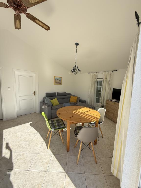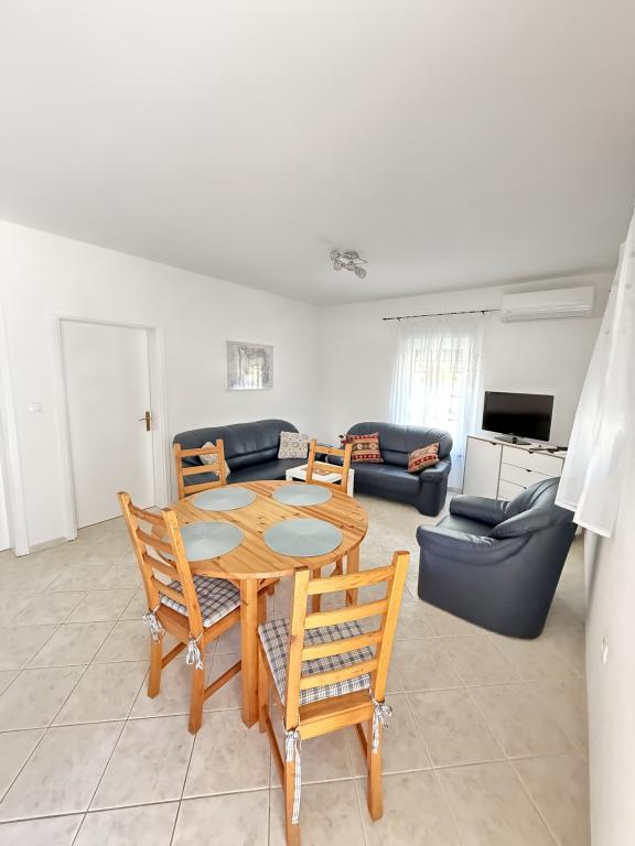 На острове Вир, всего в 150 метрах от моря, расположены двое апартаментов вместимостью до 5 человек. Апартаменты современно оборудованы, оснащены кондиционерами и адаптированы для комфортного проживания. У каждого апартамента есть собственная терраса с зоной отдыха, а на огороженной территории есть доступ к частной парковке и грилю. Близость к морю и пляжу, а также практичные удобства делают эти апартаменты подходящим выбором для семей и небольших групп друзей, ищущих жилье в непосредственной близости от всех основных удобств. Апартаменты подходят для размещения до 5 человек. Они состоят из двух спален, в апартаментах есть ванная комната с душем и стиральной машиной, а также полностью оборудованная кухня, соединенная с гостиной. Для отдыха и жизни на свежем воздухе также есть терраса с зоной отдыха. Апартаменты оснащены кондиционерами и оформлены в современном стиле, идеально подходят для семейного отдыха или проживания в небольшой компании друзей.