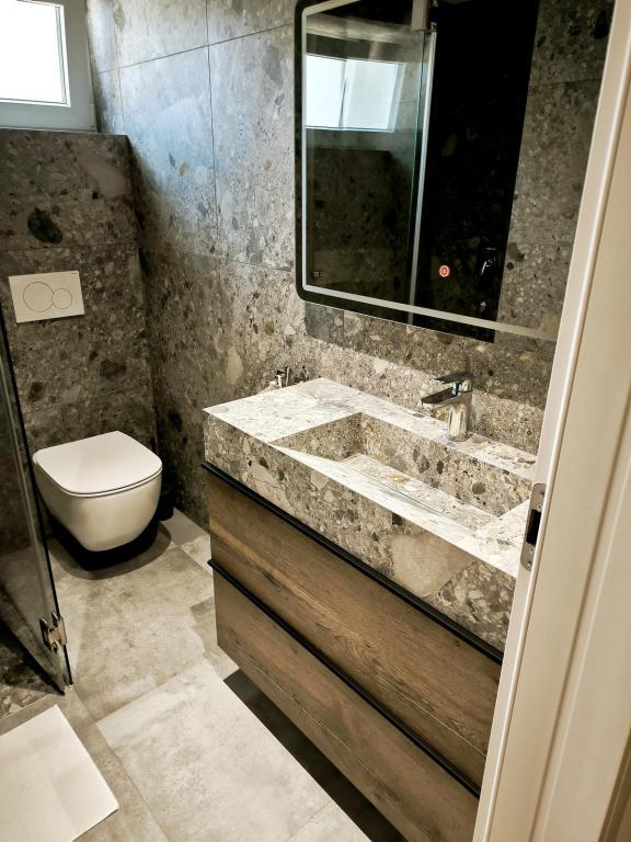 Полностью меблированные апартаменты, расположенные в тихом районе Водице, во второй линии от моря. Комплекс находится в 3 минутах ходьбы от главного пляжа и в 10 минутах от центра... Преимущество наших апартаментов в том, что все находится рядом, поэтому вам не нужно пользоваться автомобилем... Апартаменты имеют красивую большую террасу, с которой открывается вид на море, острова и центр... Весь этаж может быть арендован для 9 человек, идеально подходит для большой семьи....
