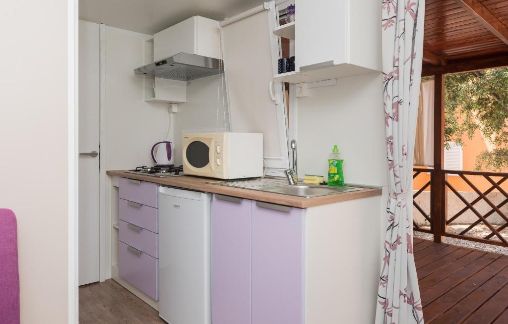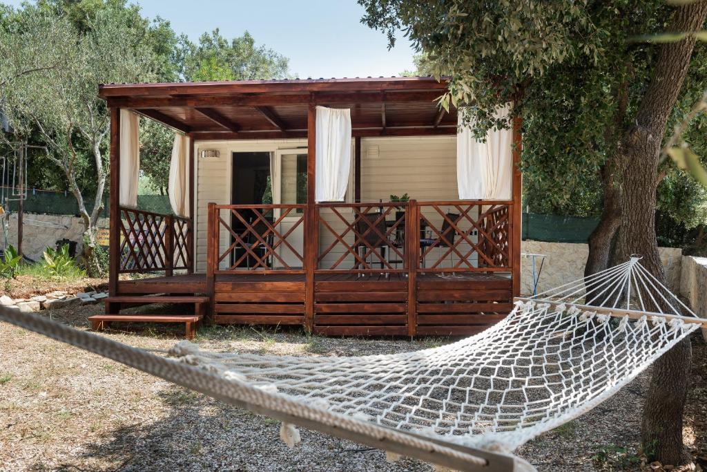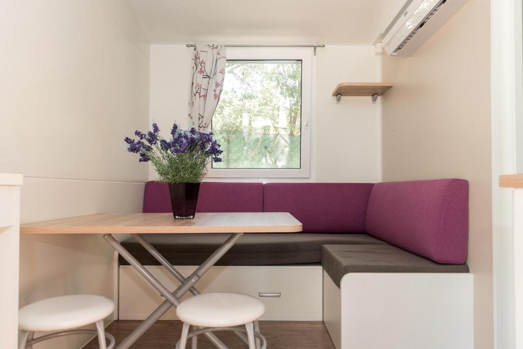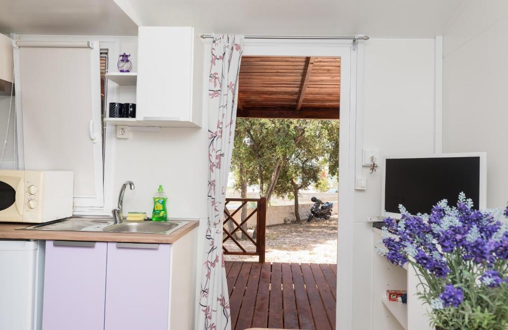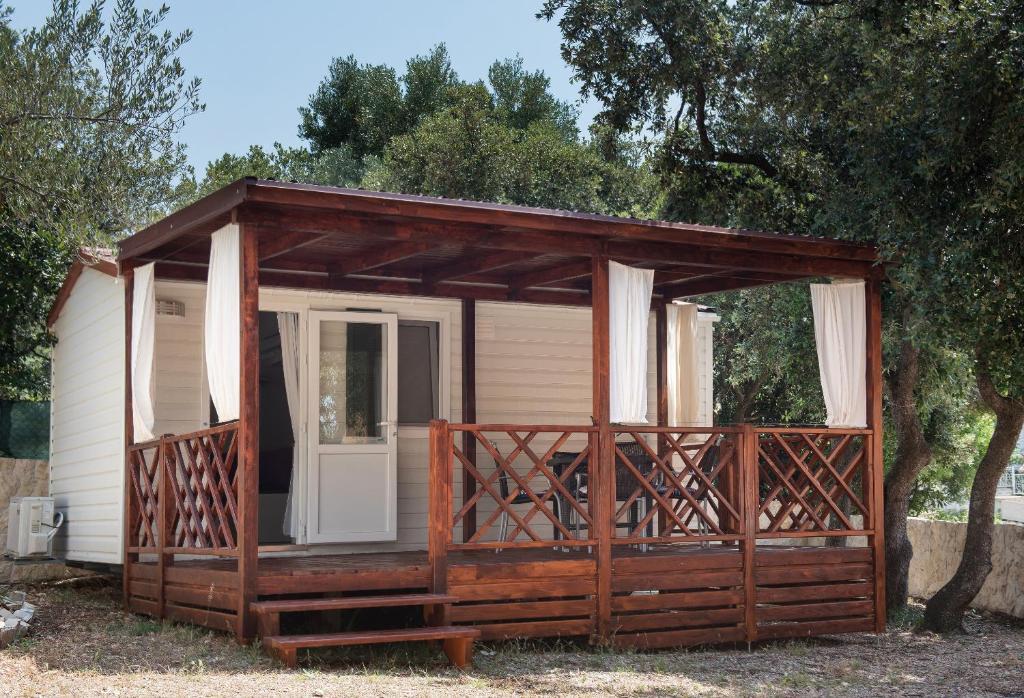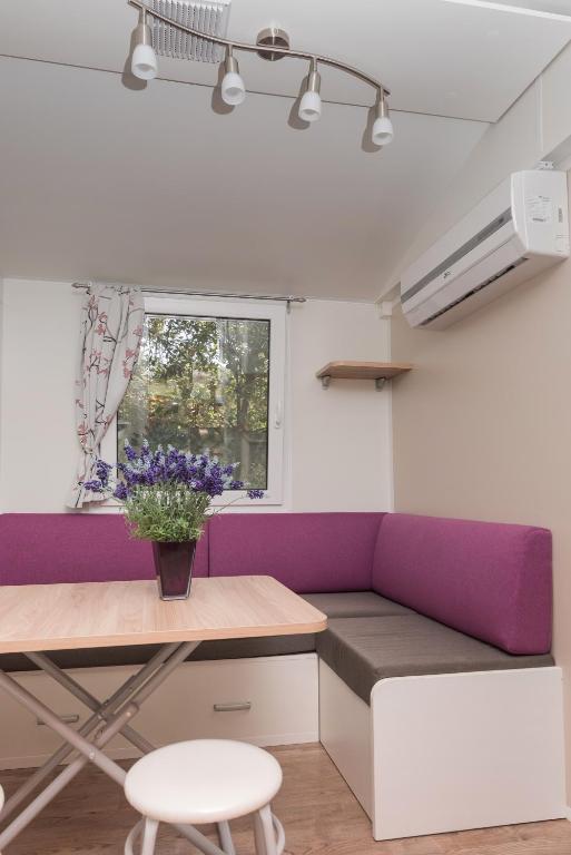 Мобильный дом расположен в центре Жаборича. Он состоит из одной спальни, ванной комнаты, кухни и столовой. В мобильном доме есть большая терраса со столом, стульями и двумя шезлонгами. Парковка расположена прямо перед домом.