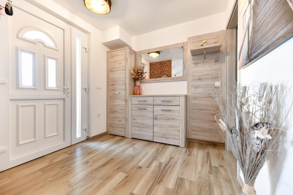 Квартира CVITA находится в семейном доме в тихом и возвышенном районе и идеально подходит для пар и семей с детьми. Полностью и современно оборудованная квартира состоит из двух спален, ванной комнаты и большой гостиной, кухни и столовой с видом. Квартира удобна для проживания, оборудована кондиционером, а терраса идеально подходит для того, чтобы выпить любимый напиток с видом на идиллический закат. Уличный гриль включен в квартиру, и они могут использовать его. Парковка предусмотрена во дворе перед домом. Также к услугам гостей бесплатный Wi-Fi и смарт-ТВ. В непосредственной близости находится магазин, продуктовый магазин, банк, почта и другие удобства. Он находится в 5 минутах езды от пляжа Коловаре на машине. Мы с нетерпением ждем вашего приезда.