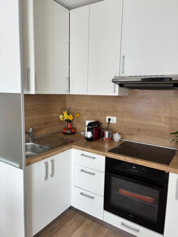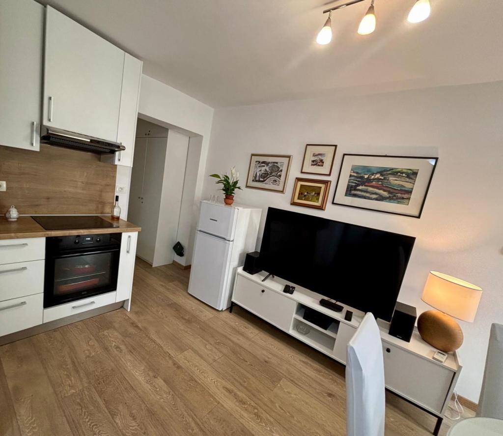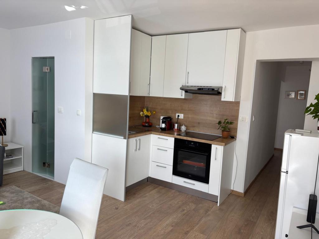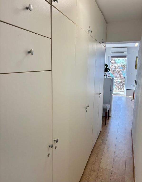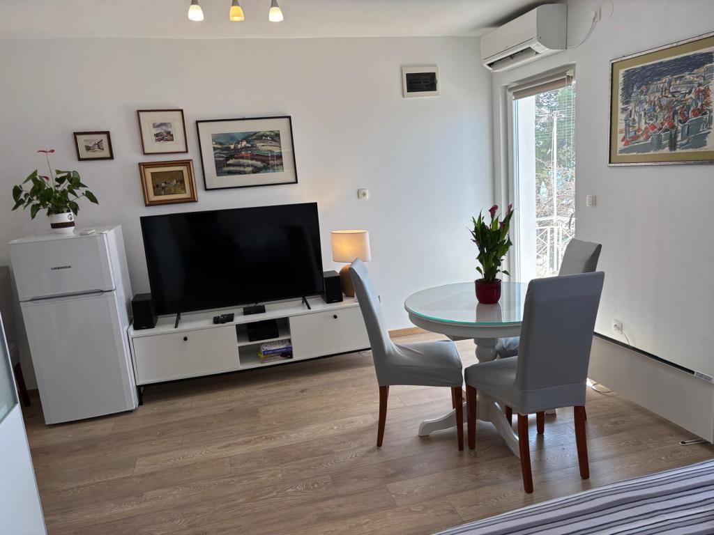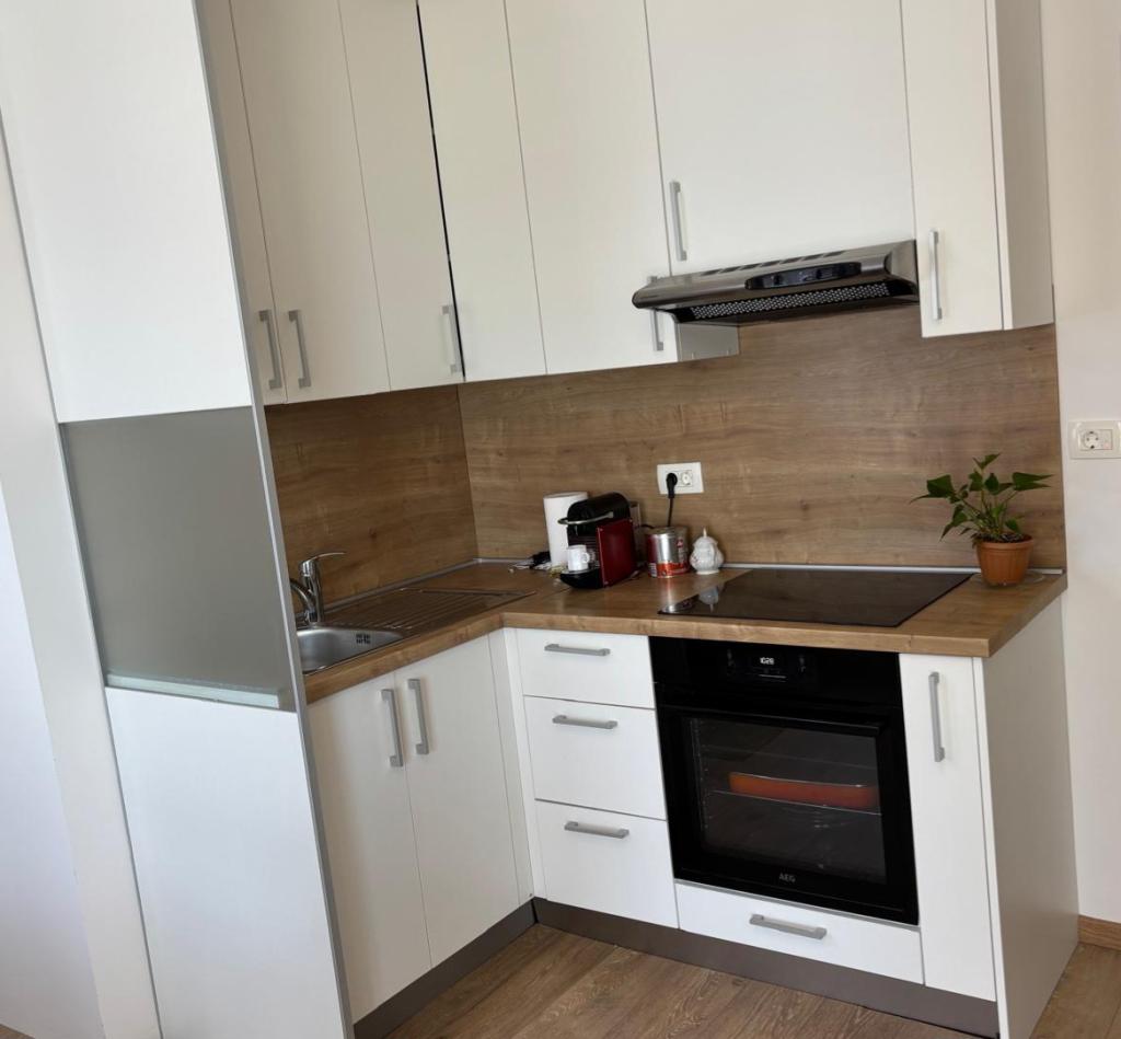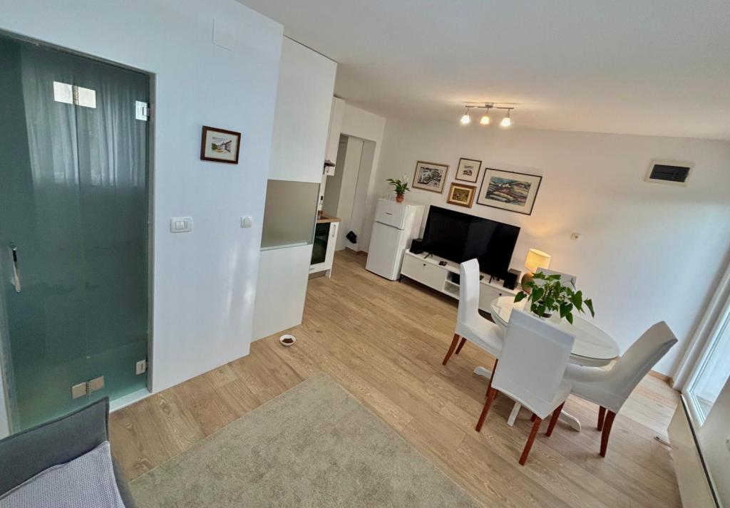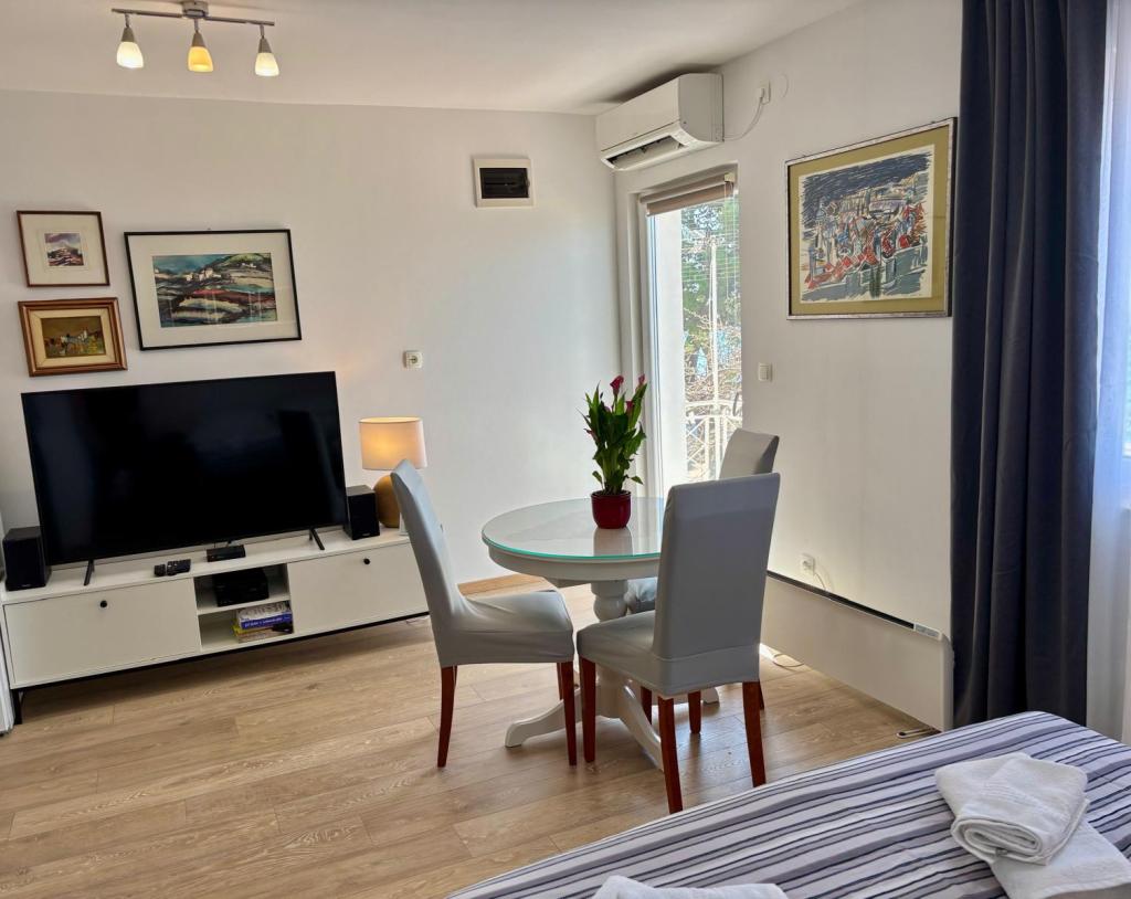 Квартира-студия полностью и современно оборудована и расположена на первом этаже семейного дома, в 30 метрах от моря и прекрасного галечного пляжа с пологим входом в море. Перед домом есть парковка для автомобиля, а во дворе — беседка с барбекю и столиками для отдыха в тени. Неподалеку находятся магазины, рестораны, кондитерская, а на въезде в город расположен торговый центр «Плодине».