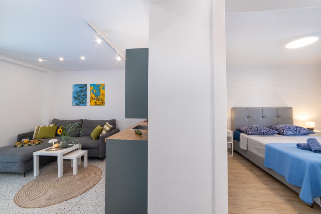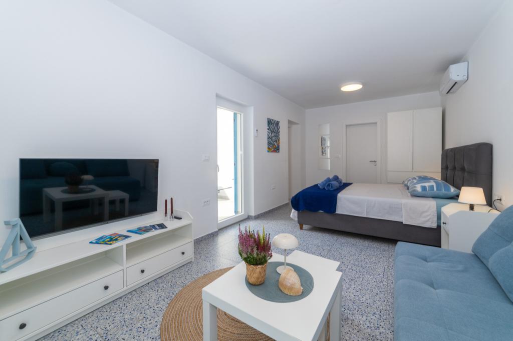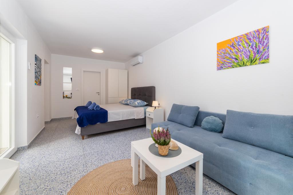 Мы остановились в номере студия+1, и мы в восторге от жилья, оно современно и стильно обставлено, в нем есть все необходимое для приятного отдыха, от удобных кроватей до кухни, на которой есть все (даже посудомоечная машина). мы пользовались бассейном.который является частью и дети веселились на батуте. Хозяева дружелюбны и всегда к вашим услугам. Пляжи близко, до них можно добраться за 3 минуты, а Заострог прекрасен, маленькое место, где есть все и много развлечений для детей... сюда стоит приехать!