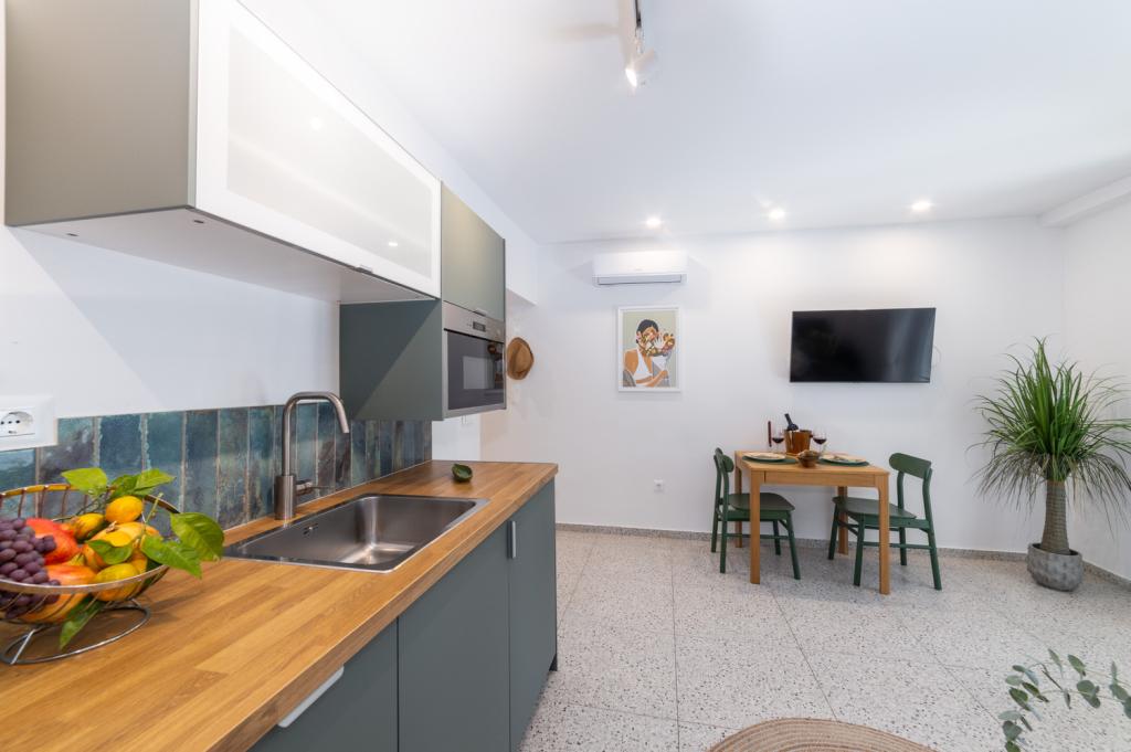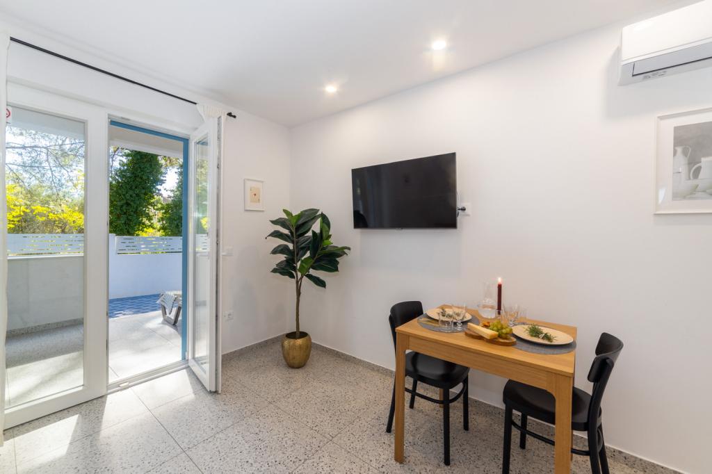 Красивая, современно обставленная квартира с качественной кухней, спальней с новой современной мебелью и удобной кроватью, а также красивой, стильной ванной комнатой. Очень приятный, вежливый хозяин, всегда поможет, даст много советов и информации, очень гостеприимный. Бассейн не виден с улицы, совершенно новый, в постоянном хорошем состоянии. Короткие расстояния до моря, ресторанов и магазинов. Собственное парковочное место на территории. Спасибо за чудесный и расслабляющий отдых.
