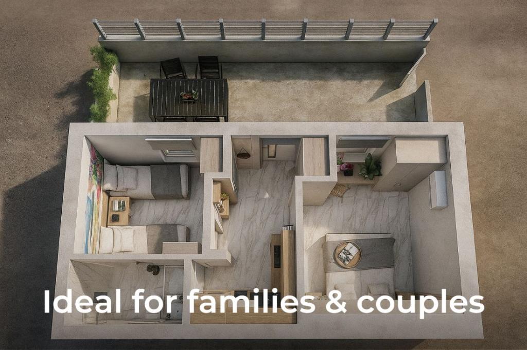 Новые, современно оборудованные апартаменты Marula расположены в красивом семейном доме, всего в нескольких минутах ходьбы от пляжа, магазинов и ресторанов. Каждые апартаменты рассчитаны на размещение до 4 человек, с возможностью установки дополнительной кровати для пятого человека. Апартаменты состоят из спальни с двуспальной кроватью, гостиной с кухней, ванной комнаты и террасы или балкона. В апартаментах есть кондиционер, спутниковое телевидение, Wi-Fi и охраняемая парковка. Кроме того, вы можете бесплатно пользоваться велосипедами, мангалами и стиральными машинами.
