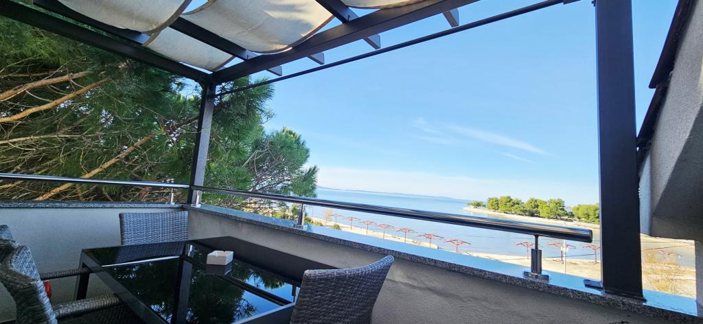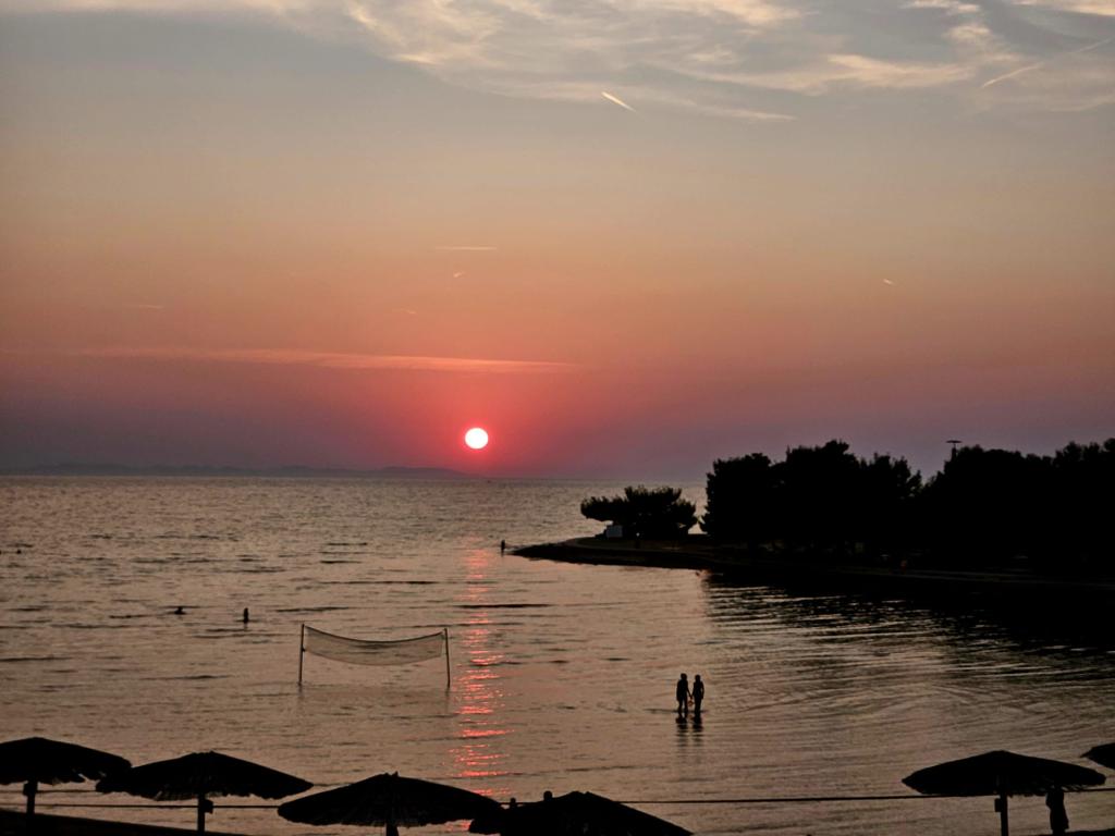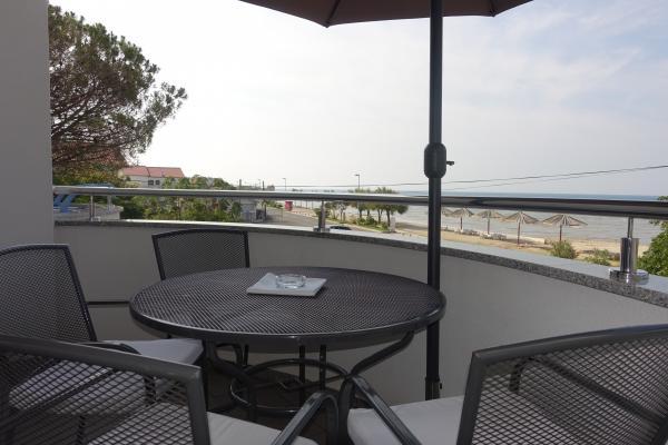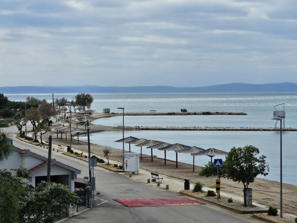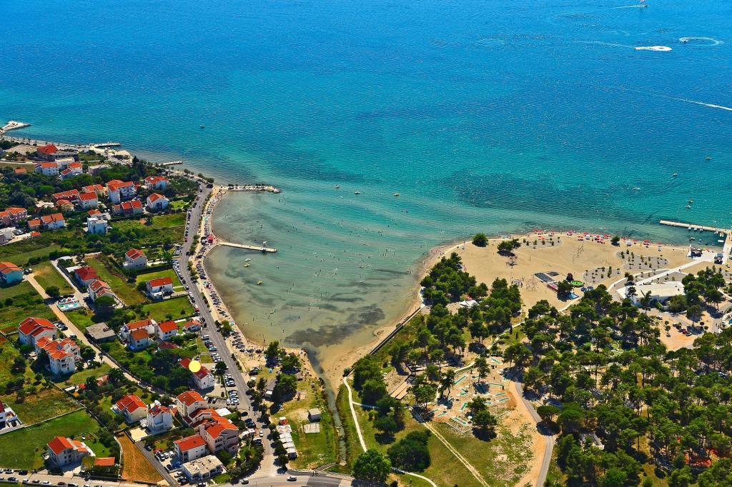 Рядом: - Туристический курорт «Затон» - 60 м - Детская игровая площадка - 20 м - Кофейня - 20 м - Ресторан с полупансионом - 30 м - Пекарня - 40 м - Киоски с пляжными принадлежностями - 40 м - Тренажерный зал на открытом воздухе - 40 м - Задар - 12 км - Нин - 1 км На пляже есть душевые, раздевалки и туалеты. На пляже можно арендовать шезлонги, зонтики, катамараны и другие принадлежности. В радиусе 100 км находятся национальные парки: Пакленица, Корнати, Плитвицкие озера, Крка и Северный Велебит.