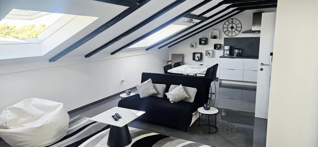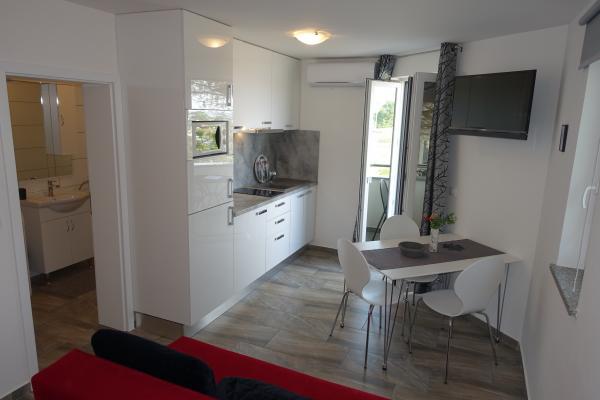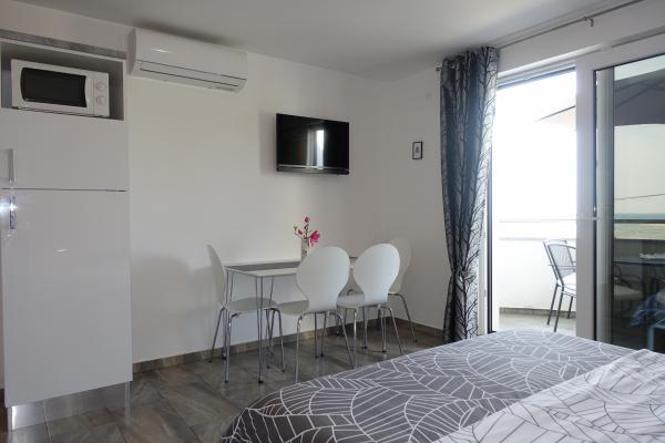 Комплекс расположен прямо у моря, на пляже в Затоне. Дома с апартаментами расположены рядом друг с другом, и из всех апартаментов открывается вид на море. Wi-Fi, парковка и кондиционер включены в стоимость.