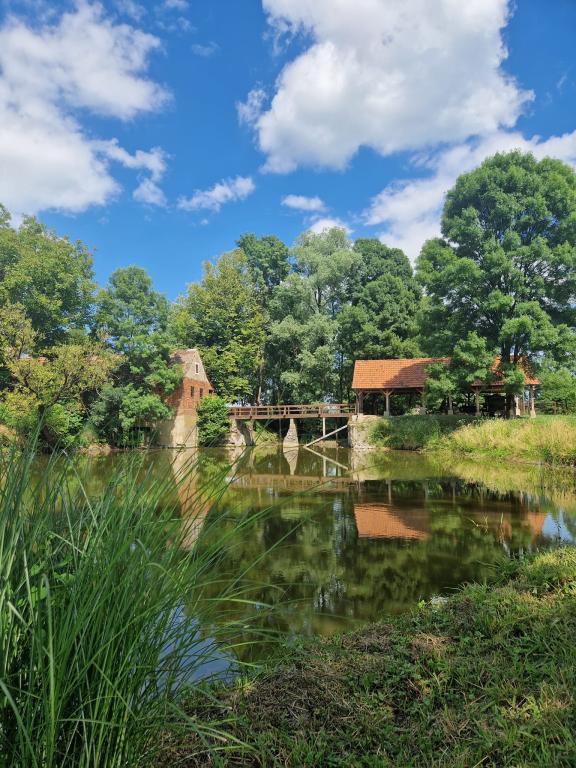 Дом отдыха "У Млину" - In Millhouse расположен в часе езды от Загреба, недалеко от городов Кутина, Липик, Дарувар, Новска. До первого населенного пункта идти 5 минут. Участок, на котором расположен дом, большой и просторный. Во дворе есть озеро, небольшой мост, лесопилка и мельница, которые придают оттенок традиции всей локации, хотя отделка как внешних, так и внутренних пространств выполнена в сочетании современного и традиционного. В непосредственной близости от дома отдыха находится река Пакра - примерно в 30 метрах от дома. Дизайн интерьера выполнен как теплое, веселое и приятное пространство для времяпровождения с друзьями или семейных посиделок. Дом оборудован необходимой бытовой техникой, в ванной также есть предметы первой необходимости (бумага, полотенца, фен). В номерах также есть постельное белье, одеяла и места для хранения одежды.