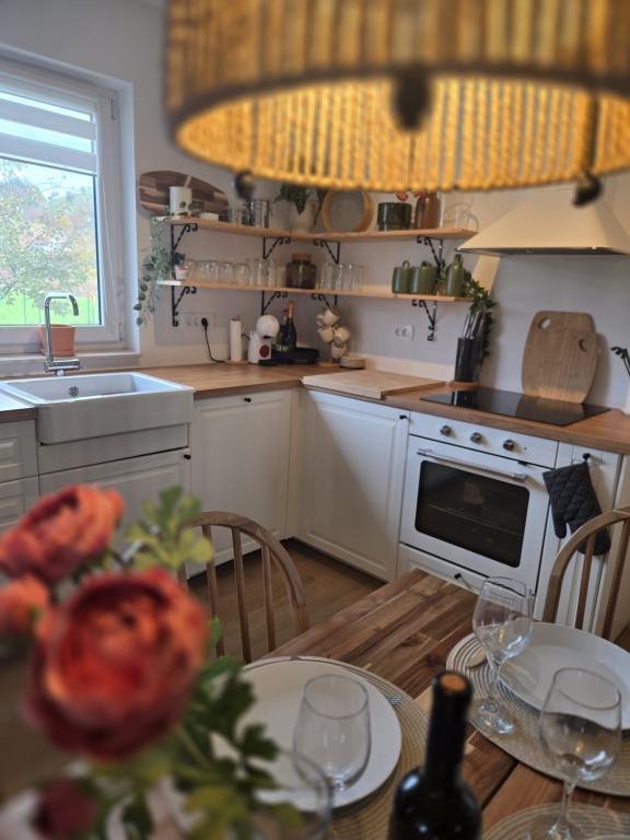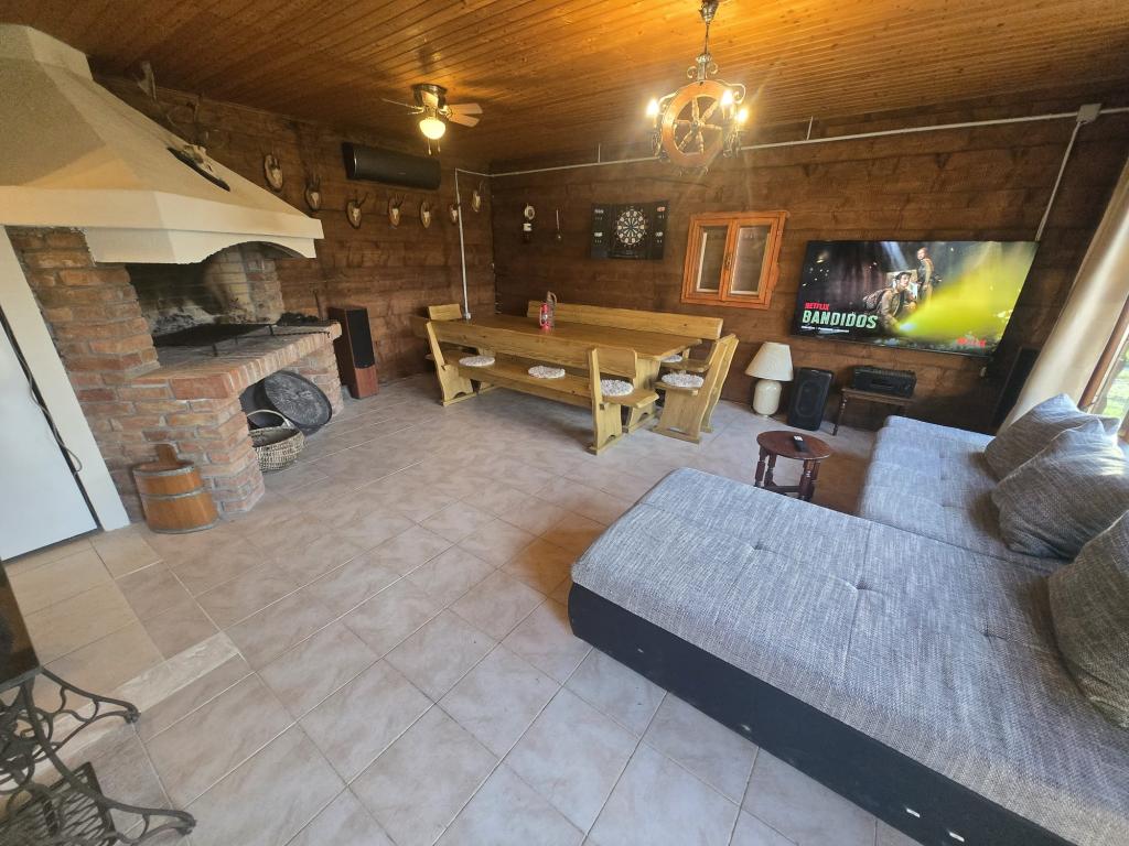 Семейный дом «Ден» — оазис тишины и покоя. Просторный дом, который полностью в вашем распоряжении, обеспечивает домашнюю атмосферу в деревне и ее окрестностях. Рядом с домом находится настоящая охотничья таверна с камином и оборудованной кухней, где можно насладиться приготовлением еды или общением. Вид из окна на поля и леса подарит неповторимые минуты отдыха. После того, как вы припаркуете свой автомобиль в гараже, забудьте о городской суете, вам останется только чистый отдых и союз природы и человека. Разрешены домашние животные. Дом полностью оборудован для проживания максимум 8 человек.