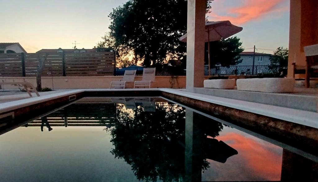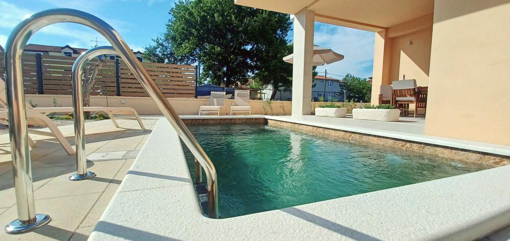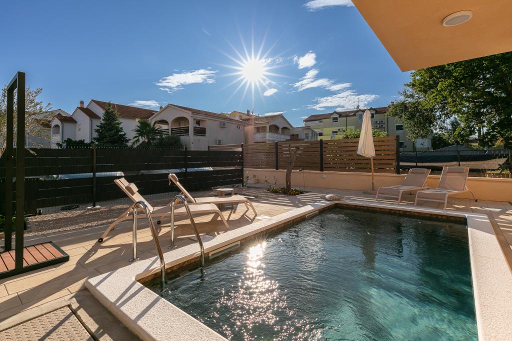 Современно оборудованная и очаровательная вилла с бассейном, расположенная в тихом районе Биограда-на-Мору, идеально подходит для спокойного отдыха. Элегантный интерьер предлагает всё необходимое для комфортного отдыха, а просторный двор с собственным бассейном и зоной для загара гарантирует идеальное наслаждение средиземноморским солнцем. Насладитесь сочетанием комфорта, стиля и близости к морю в этой прекрасной вилле. Если вы ищете тихий, расслабляющий и комфортный оазис для отдыха, то это идеальное место и дом для такого типа отдыха.