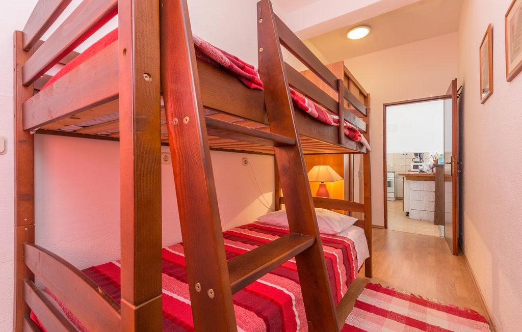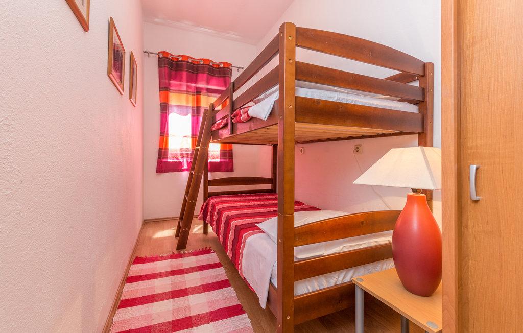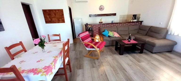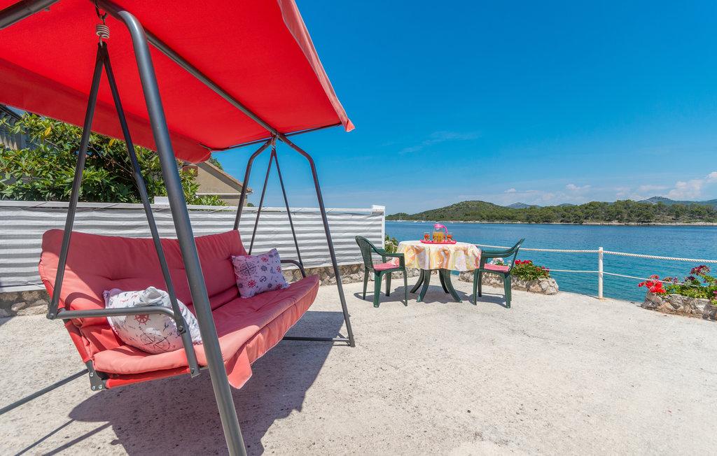 Просторная терраса с удобными шезлонгами и зонтиками, откуда открывается прекрасный вид на море, — прекрасное приглашение провести здесь отпуск. Отдохните с семьей в этом приятном месте. Мали-Иж, расположенный в среднем проливе между островами Углян и Дуги-Оток, окружен другими островками. Паромное и лодочное сообщение позволяет быстро добраться до него. В ресторанах подают отличные местные вина и изысканные далматинские блюда. Дом для отдыха состоит из просторной общей зоны, гостиной, кухни и столовой открытой планировки, двух спален и ванной комнаты. В одной спальне установлена двуспальная кровать размером 160×200 см, а в другой спальне — двухъярусная кровать размером 90×200 см. В доме есть просторная
