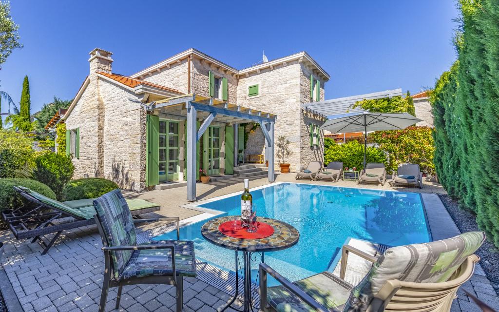 Вилла Зельда — это недавно построенный дом для отдыха, в котором в качестве основного строительного материала использован камень, что характерно для истрийской архитектуры. Дом стоит отдельно, окружен стенами и имеет солнечный двор с освещенным бассейном. Он расположен в Лижняне, небольшом прибрежном городке на юго-востоке Истрии, недалеко от местного пляжа. Ваша терраса станет местом, где вы сможете отдохнуть и расслабиться, организовать барбекю с использованием уличного камина, весело провести время у бассейна или освежиться в нем в жаркий летний день. На первом этаже реализована концепция открытого пространства с кухней и столовой на верхнем уровне, а также гостиной с красивым камином на нижнем