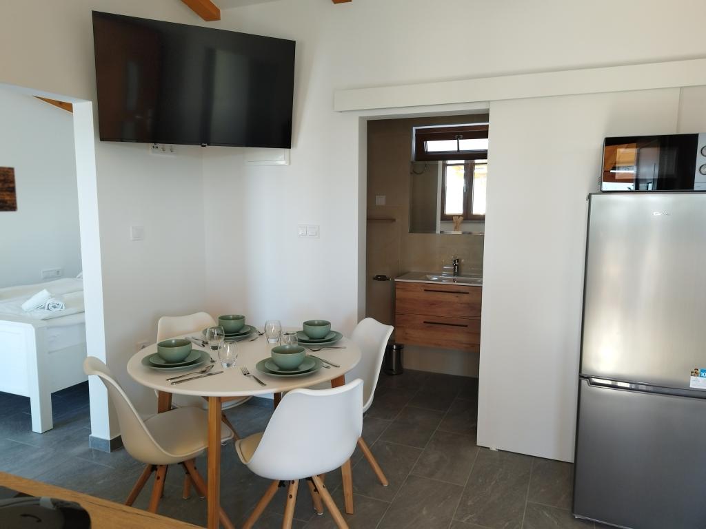 Этот очаровательный, недавно отремонтированный дом площадью 40 м² включает в себя две уютные спальни, элегантную ванную комнату и современную кухню, оборудованную посудомоечной машиной, микроволновой печью, холодильником и всей необходимой посудой. Столовая и гостиная с телевизором создают приятное пространство для общения. В каждой комнате установлен кондиционер для вашего максимального комфорта. Перед домом расположена просторная крытая каменная терраса (90 м²) со столом, стульями и барбекю — идеальное место для утреннего кофе, неспешного завтрака, книги в руках или вечернего общения на фоне заката.