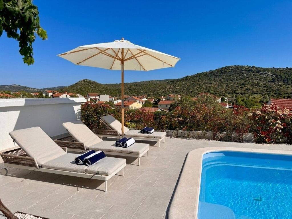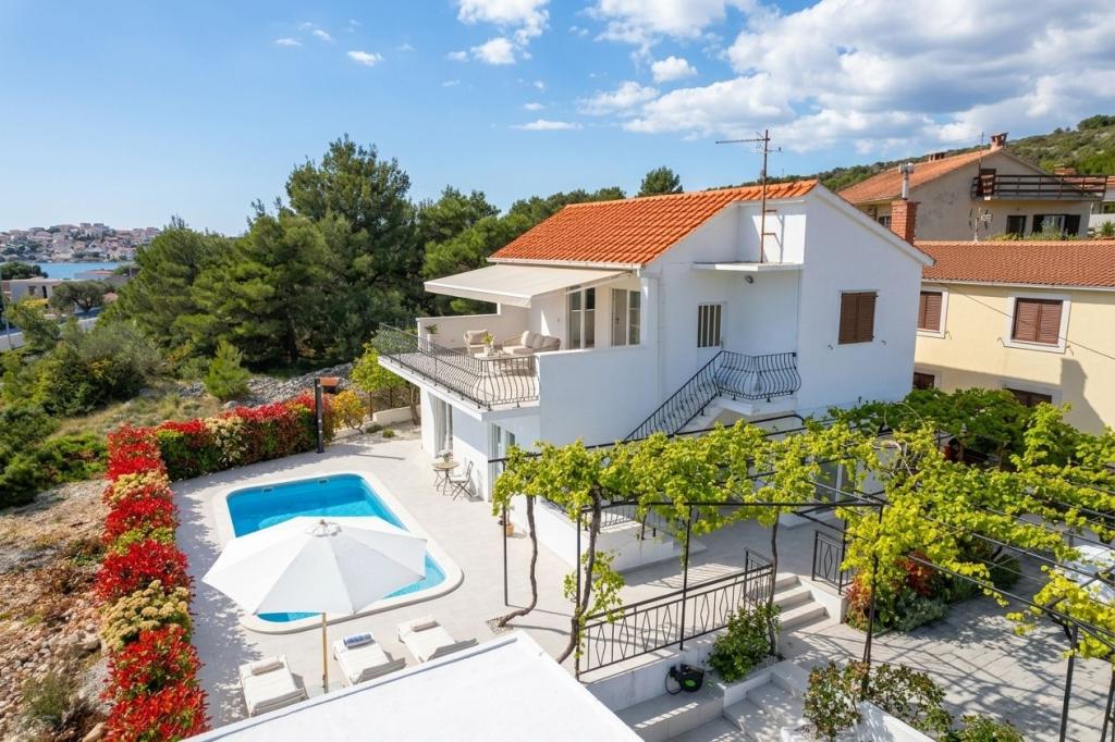 Расположенная недалеко от чистейших пляжей Рогозницы и Примоштена, эта вилла в средиземноморском стиле идеально подходит для семейного отдыха. Расслабьтесь у бассейна, позагорайте на шезлонгах или насладитесь вечерами у камина. Вилла с 4 просторными спальнями, 3 современными ванными комнатами, частной парковкой, барбекю и большой террасой на верхнем этаже сочетает в себе комфорт и очарование. Всего в 300 метрах от пляжа, это идеальное место для расслабляющего и незабываемого отдыха.