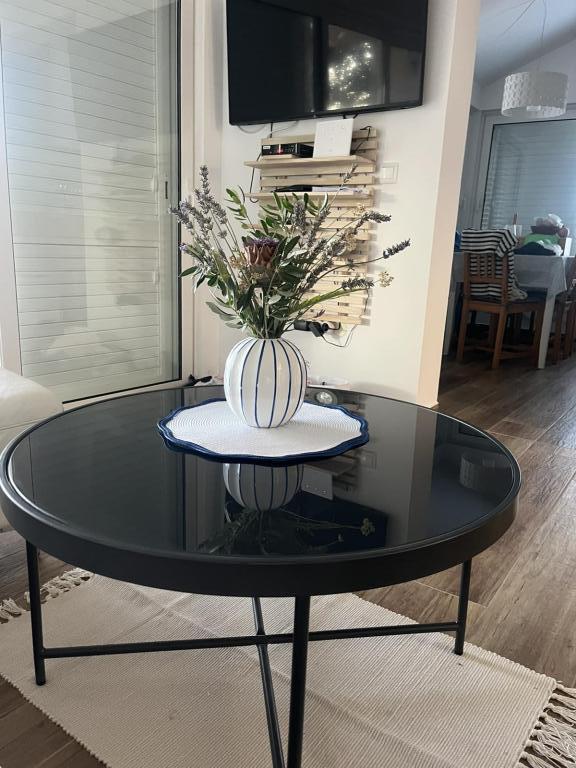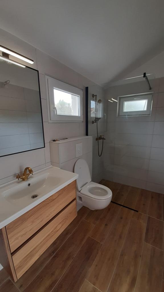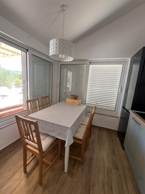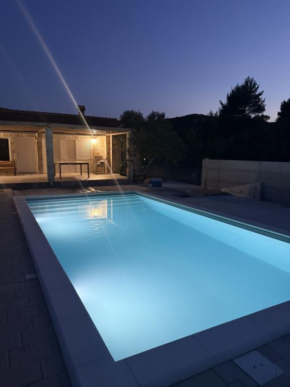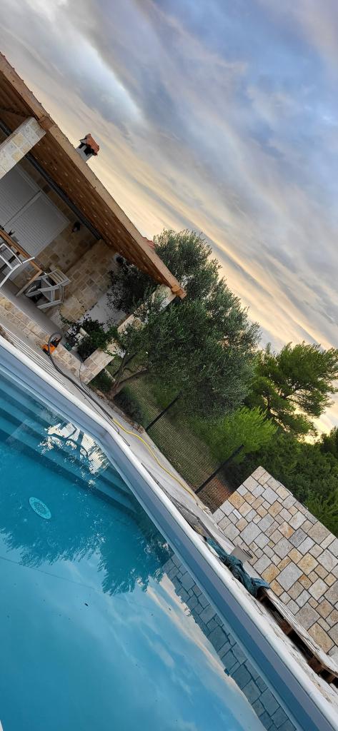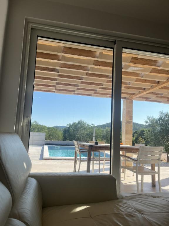 Полностью оборудованная вилла с подогреваемым бассейном 4x8, солнечным душем, шезлонгами, стульями, большой террасой и встроенным барбекю. Одноэтажный дом расположен в глубине побережья между Тисно и Трибунем, в деревне Ивинь. Вилла имеет большой сад площадью 3500 м² с 80 оливковыми деревьями, инжиром, множеством лаванды и других средиземноморских цветов. Расстояние от центра города составляет 3 км, вилла расположена вдоль региональной дороги Водице – Тисно, Муртер. Неподалеку находятся национальный парк Корнаты и водопады Крка.