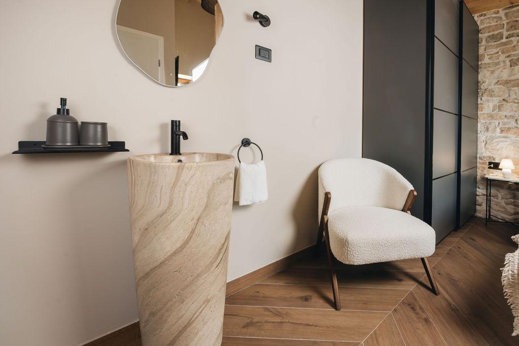 Окружающая местность утопает в природе, окружена лесами и тропами, подходящими для таких занятий, как прогулки, бег, езда на велосипеде или отдых на свежем воздухе. Здесь очень тихо, так как вы находитесь практически у последнего здания, выходящего в лес и зелень, что обеспечивает спокойный отдых под звуки ветра и щебетание птиц. Недалеко от здания находится исторический старейший город Истрии, Несактиум, до которого можно дойти пешком и насладиться позитивной