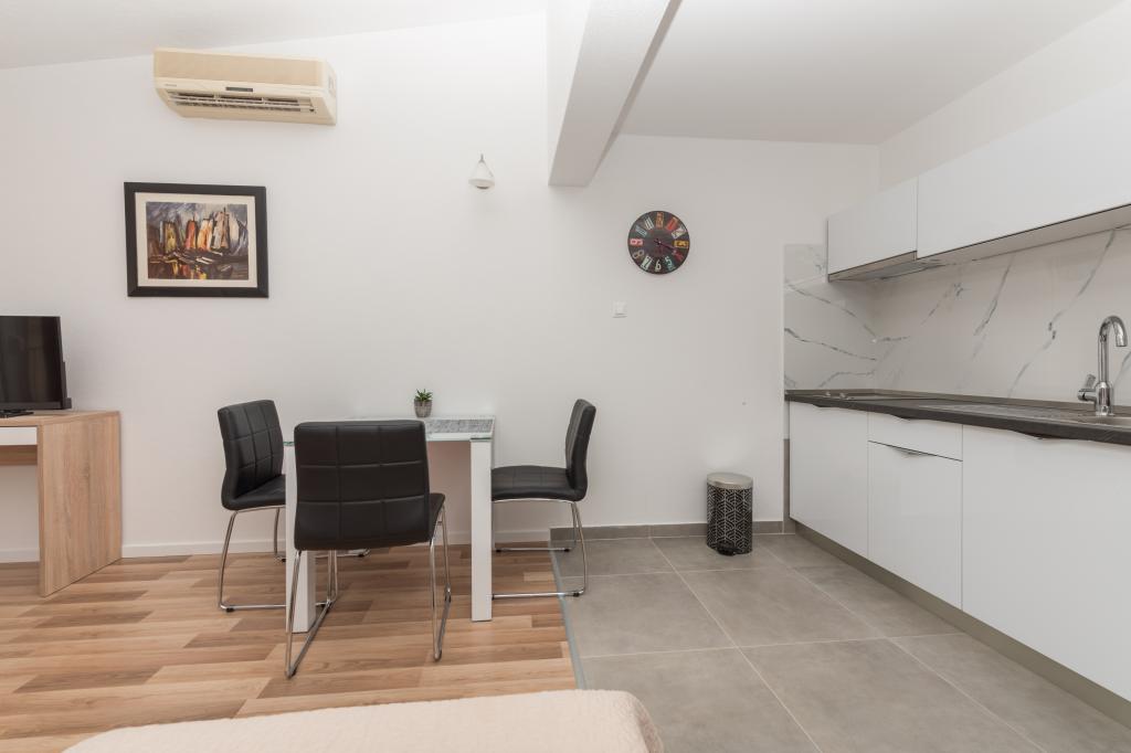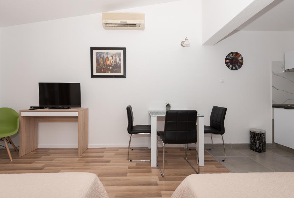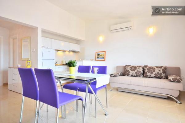 Апартаменты с кондиционером и видом на море, всего в 200 м от главного пляжа, в 4 минутах ходьбы. Апартаменты 2+2 - комфортабельные, современно меблированные, площадью 50 м2, отдельная спальня с двуспальной кроватью размера «king-size» и раскладная кровать для 2 человек в гостиной. Апартаменты 4+1 с 2 спальнями, большой гостиной с раскладной кроватью для 1 человека/ребенка. Подходят для семей и пар. Полностью кондиционированы, 3 кондиционера. Апартаменты 3 комфортабельные, на 2-3 человека, с балконом - потрясающий вид на море и острова. В окрестностях есть рестораны, парковка рядом с домом.