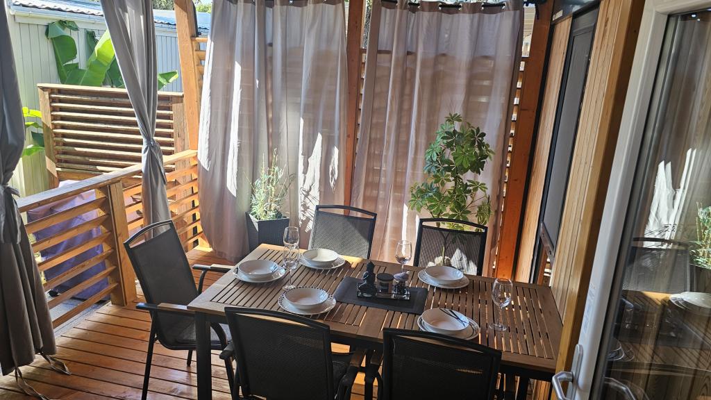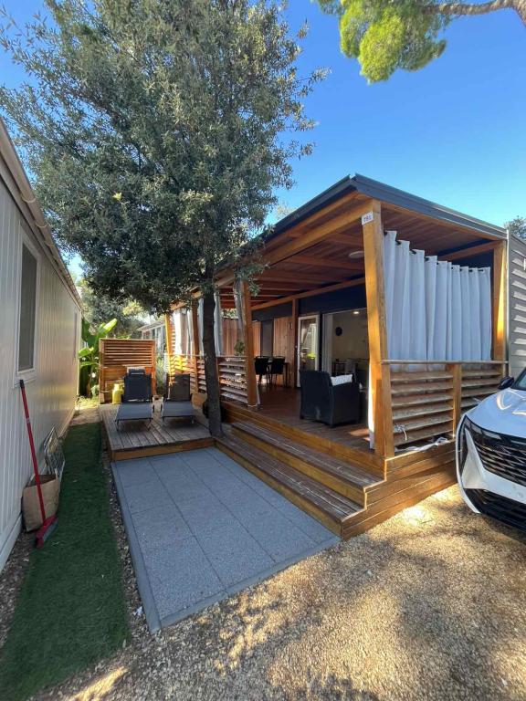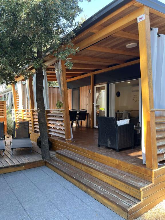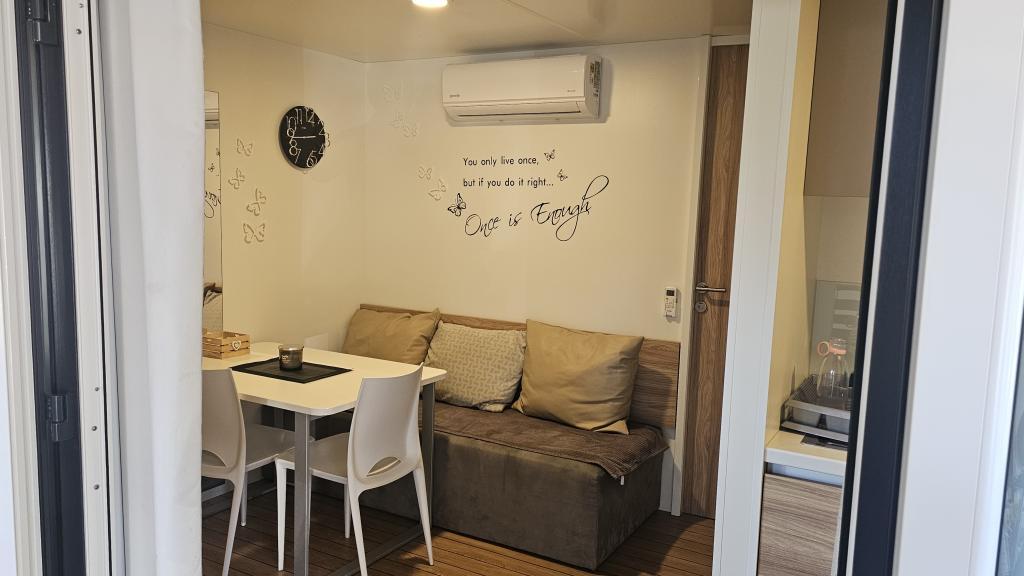 Современный мобильный дом с кондиционером расположен в кемпинге Park Soline, всего в нескольких шагах от пляжа и в 15 минутах ходьбы от центра Биограда. К услугам гостей 2 спальни, кухня, гостиная, 2 ванные комнаты и крытая терраса с садовой мебелью. Бесплатный Wi-Fi, парковка, развлечения для детей, спортивные площадки и ресторан средиземноморской кухни на территории кемпинга. Идеально подходит для семей или пар, желающих отдохнуть в тени сосен, недалеко от всех основных достопримечательностей.