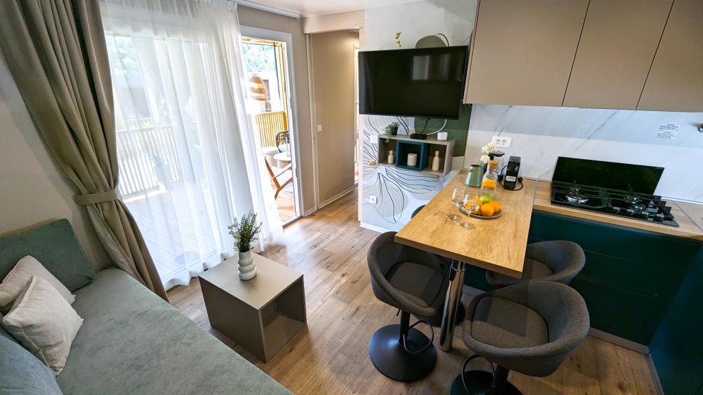 Наслаждайтесь природой и комфортом: мобильные дома Jaki в кемпинге Soline в Биограде-на-Мору. Расположенные в тихой части 4-звездочного кемпинга, в окружении соснового леса, наши современные мобильные дома идеально подходят для размещения до 6 человек. Наслаждайтесь близостью к пляжу (2–5 минут ходьбы), магазинам и ресторанам, а также набережной, ведущей к центру города (15 минут). В этих домах есть 2 спальни и 2 ванные комнаты, гостиная, большая терраса с обеденным столом и зоной отдыха, а также полностью оборудованная кухня с посудомоечной машиной, микроволновой печью, кофеваркой, тостером, блендером и грилем. В доме также есть бесплатный Wi-Fi, бесплатная парковка рядом с домом, Smart TV, кондиционер, полотенца и постельное белье. Кемпинг предлагает множество удобств для всей семьи: прекрасные песчаные и галечные пляжи, простирающиеся до самого центра города, ресторан средиземноморской кухни, детская площадка, спортивные мероприятия и прокат велосипедов. Dalmaland, крупнейший тематический аквапарк Хорватии, находится в 15 минутах езды.
