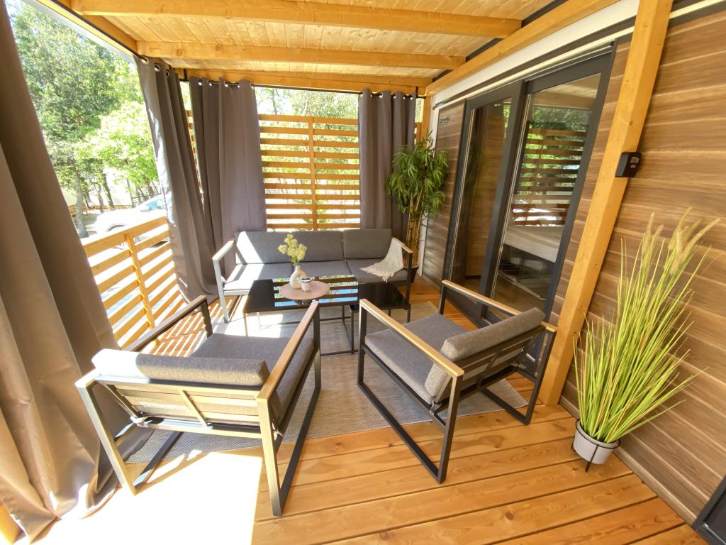 Содержимое мобильного дома Мобильный дом включает в себя: • 2 спальни • Гостиную с дополнительной кроватью для 2 человек • Полностью оборудованную кухню • Столовую • Ванную комнату • Большую крытую террасу площадью около 30 м² Оборудование • Кондиционер • Бесплатный Wi-Fi • Smart TV со спутниковыми каналами • Кофеварку • Электрический чайник • Тостер • Микроволновую печь • Полный кухонный инвентарь • Барбекю • Фен • Постельное белье включено • Полотенца включены Идеально подходит для семей Мобильный дом особенно подходит для семей с детьми. В наличии: • Детская кроватка • Детский стульчик для кормления Преимущества размещения Мобильный дом Биоград на Мору – Кемпинг-парк Солине Всего в 350 м от пляжа Естественная тень сосен Тихое место Большая терраса Близко к морю Набережная вдоль моря до центра Рес