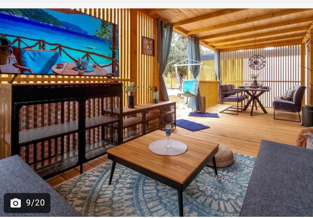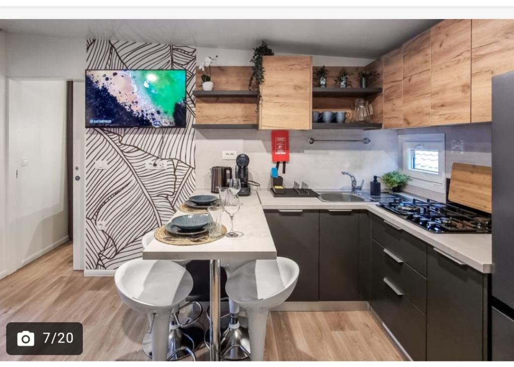 ️Большая крытая терраса с обеденной зоной и открытой гостиной с большим телевизором и дартсом ️Большой газовый гриль + газовая плита ️Полностью оборудованная кухня (холодильник, микроволновая печь, газовая плита, чайник, кофеварка, посудомоечная машина, тостер, вся необходимая посуда) ️Гостиная с большим телевизором ️Бесплатный WI-FI, спутниковое телевидение, кондиционер ️Удобное постельное белье и полотенца из дамасской ткани ️Фен, утюг ️Высокий стульчик для детей ️1 парковочное место, второе парковочное место за дополнительную плату Кемпинг мобильных домов Pearl House расположен всего в 3 минутах ходьбы от песчано-галечного пляжа и в 10 минутах ходьбы от центра Биограда. На территории кемпинга и в его окрестностях есть все необходимое для спокойного отдыха - от магазинов и ресторанов до спортивных площадо