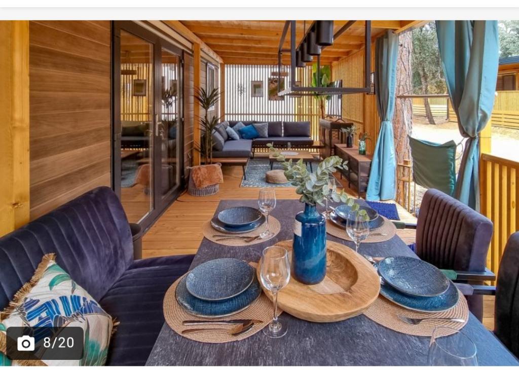 Наш современно оборудованный мобильный дом предлагает комфортное размещение для 6 человек. Он располагает 2 просторными спальнями, гостиной с диваном-кроватью и 2 ванными комнатами. К вашим услугам большая крытая терраса с обеденной зоной и открытой гостиной, идеально подходящая для долгих вечерних посиделок. Здесь вы можете поиграть в дартс или отдохнуть перед большим телевизором, готовя еду на нашем большом газовом гриле и уличной печи. Крытая терраса окружена соснами и обдувается лёгким морским бризом. С одной стороны террасы расположена просторная обеденная зона с удобным диваном и ещё более удобными креслами, а с другой стороны, в нашей открытой гостиной есть удобная зона отдыха, где вы можете не только отдохнуть, но и посмотреть любимые телепередачи на огромном телевизоре со спутниковыми каналами, Netflix и HBO GO. Дом расположен в 3 минутах от прекрасного пляжа.