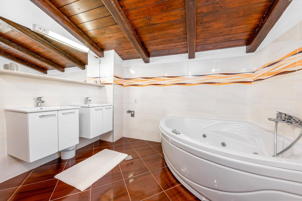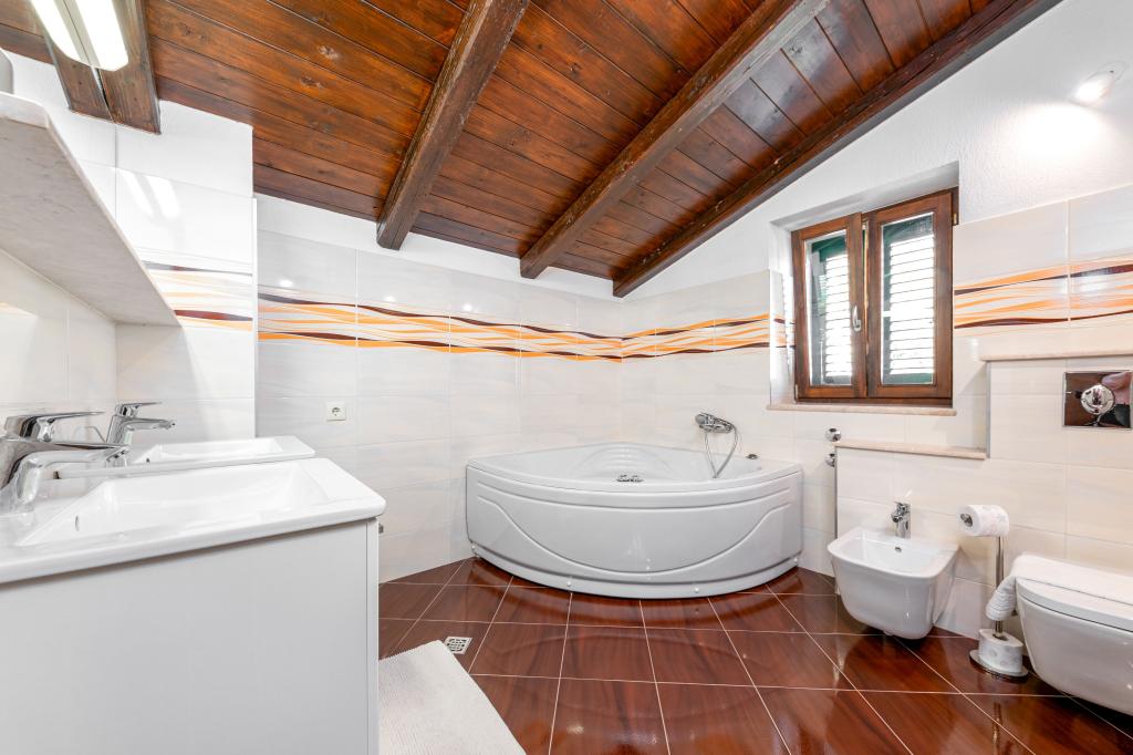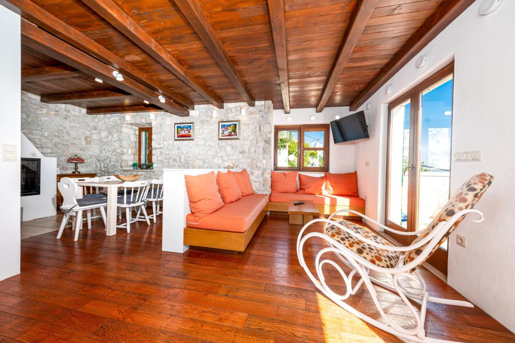 Добро пожаловать в наши просторные и очаровательные апартаменты, расположенные в частном доме, состоящем из трех апартаментов – идеальный выбор для спокойного и расслабляющего отдыха в истинно далматинской атмосфере. Апартаменты площадью 115 м² предлагают все необходимое для приятного пребывания. Они состоят из двух комфортабельных спален, полностью оборудованной кухни, соединенной с просторной гостиной, двух ванных комнат (одна из которых оборудована гидромассажной ванной) и отдельного туалета. Деревенский декор и тщательно подобранные детали создают теплую атмосферу и аутентичный далматинский колорит. Дом расположен на живописном участке, а лестница ведет к общему бассейну. Бассейн находится на просторной террасе, оборудованной шезлонгами и зонтиками, идеально подходящей для принятия солнечных ванн и наслаждения видом. Из-за лестницы и особенностей местности апартаменты не подходят для людей с ограниченными возможностями или людей с ограниченной подвижностью. Рядом с домом имеется частная парковка (что является большим преимуществом в летние месяцы). Мы с нетерп