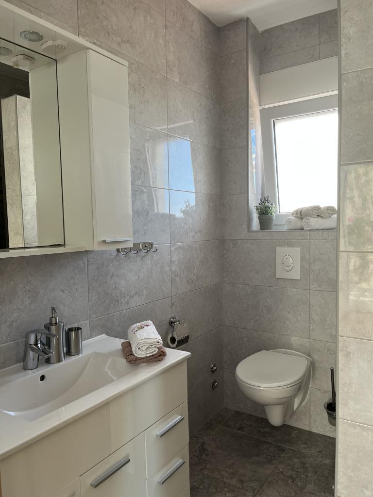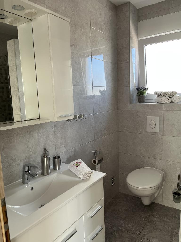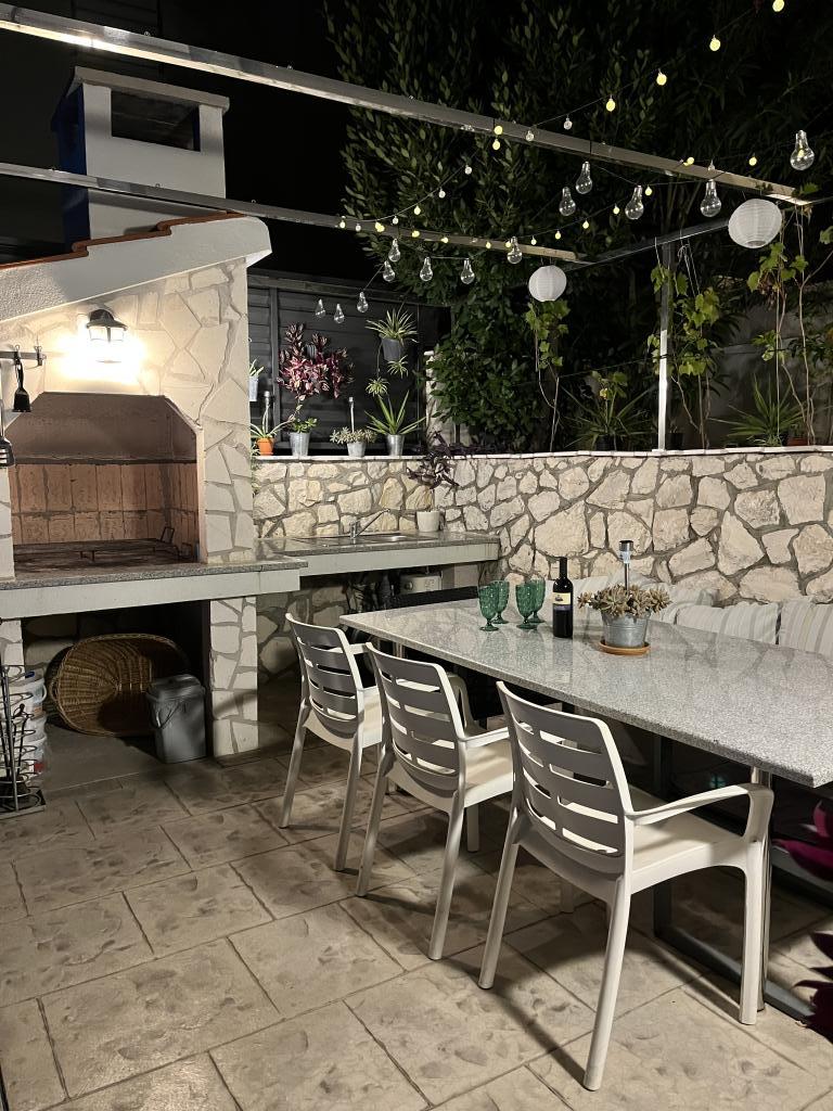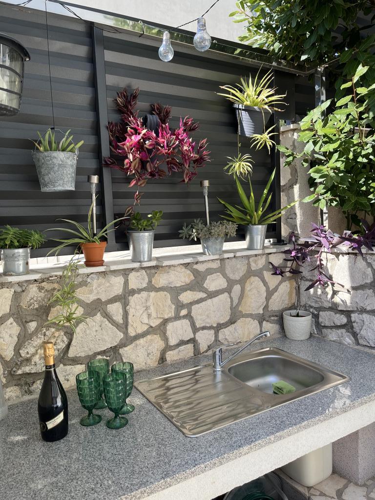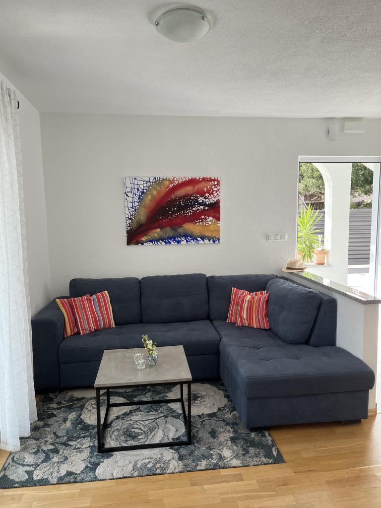 Мы сняли верхнюю квартиру и были очень счастливы. Помещение чистое и есть все необходимое. Вид с террасы потрясающий!!! Там есть обеденный стол и гостиная. Очень удобная кровать, посудомоечная машина, хороший большой душ и стиральная машина сделают ваш отдых легким. Бассейн делает его очень приятным, и в этом саду также есть душ, чтобы можно было принять душ перед тем, как войти в бассейн. В 60 метрах от дома Вас ждет море, прекрасное!!! Рядом находится мини-маркет, а также несколько кафе и хороших ресторанов. Сделайте себе одолжение и арендуйте это действительно хорошее место для очень, очень хорошего отпуска. Дарко и Никлас — лучшие хозяева, которых только можно пожелать. Они внимательны, дружелюбны и всегда готовы дать вам полезные советы, что можно и чего нельзя делать, когда вы находитесь в Хорватии.