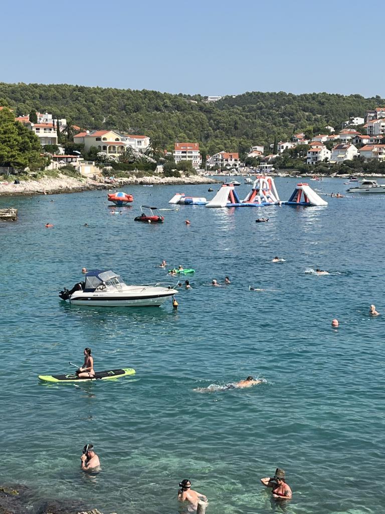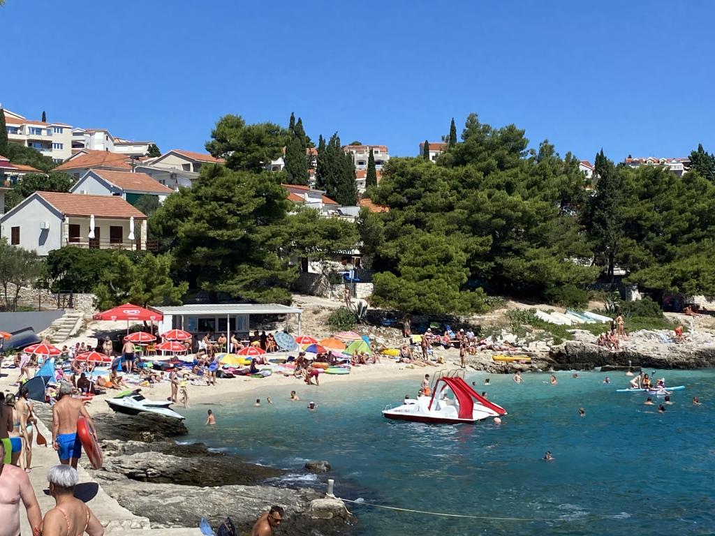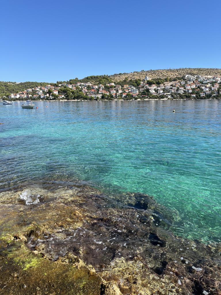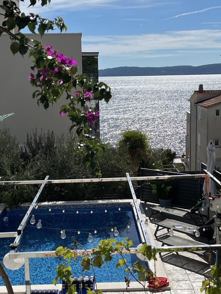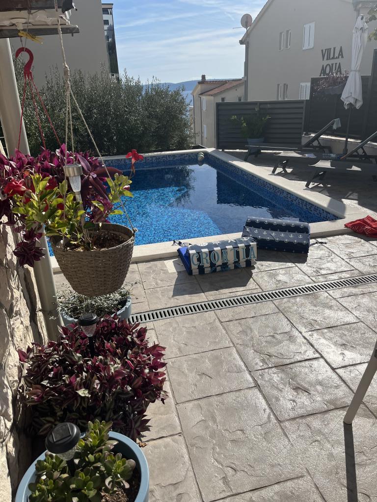 Утренние прогулки по морю, такому синему, что до боли, завтрак на балконе с волшебным видом, современный свежий свет и красивый внутренний дворик у бассейна, где мы несколько раз ужинали. Соляные ванны прямо под домом из небольших саун/камней. Хороший галечный пляж ок. В 250 м от дома, идеально подходит для маленьких детей, за углом небольшой симпатичный продуктовый магазин. Никаких шезлонгов-пакса или евродиско у бассейна, просто для удовольствия. Фантастический хозяин, который с большим терпением помогает во всем, у соседа есть компания такси, и он отвозил нас, куда мы хотели, на самолеты и обратно, на экскурсии в Трогир и т. д. Настоятельно рекомендую.