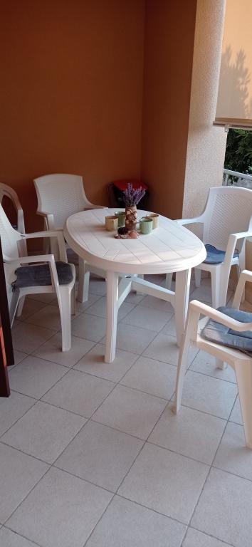 Квартира расположена в тихом жилом комплексе на первом этаже здания. Квартира полностью меблирована и оснащена бытовой техникой. Объект расположен в 250 м от первого каменистого пляжа и в 2 минутах езды на машине от песчаного пляжа в центре города. В центре есть магазин, ресторан, 2 кофейни на пляже и церковь. Также от апартаментов до центра проложена недавно отремонтированная набережная вдоль моря. Остров идеально подходит для летнего отдыха, поскольку он идеально подходит для велосипедистов, любителей пеших прогулок и пробежек на вершине острова. Множество достопримечательностей.