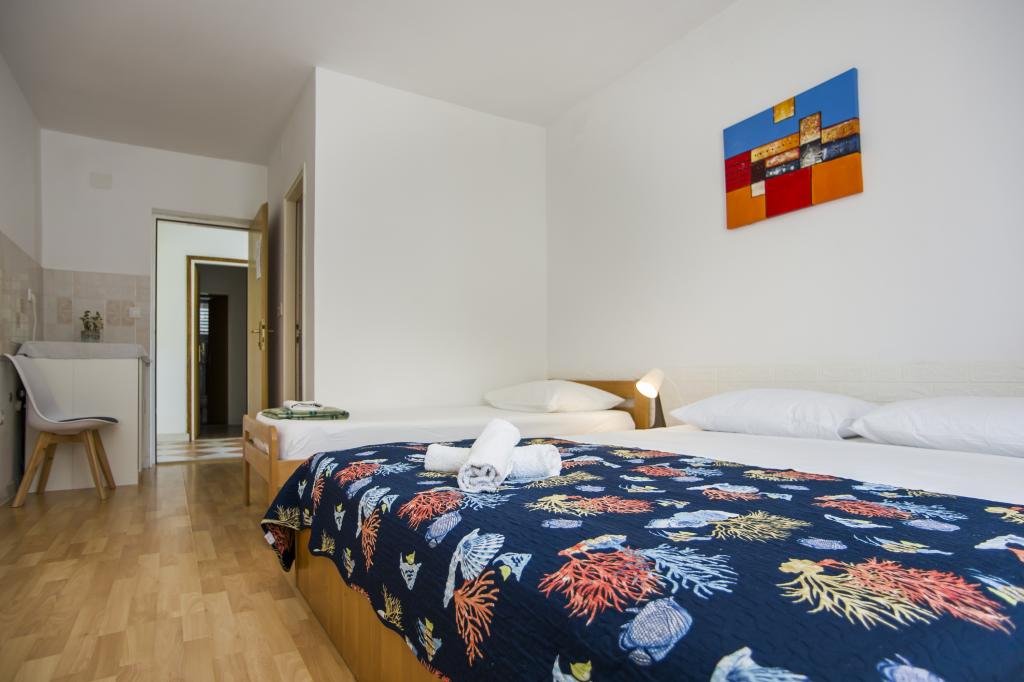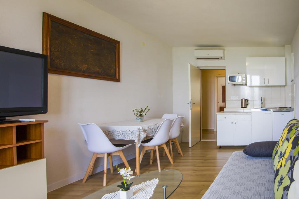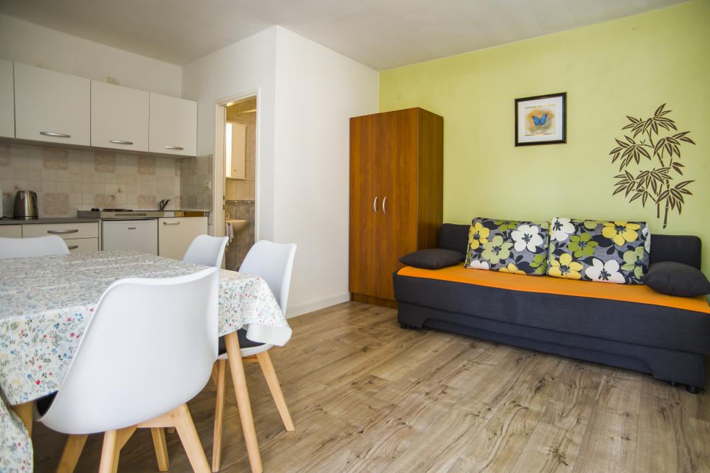 Мы остановились в квартире-студии + 2 на первом этаже. Квартира очень большая, аккуратная, терраса отличная. Близость к пляжу 10 шагов, красивый сад. Мы были в восторге. Владельцы очень добрые люди. Пребывание всей недели было идеальным.