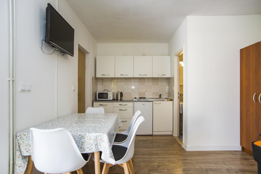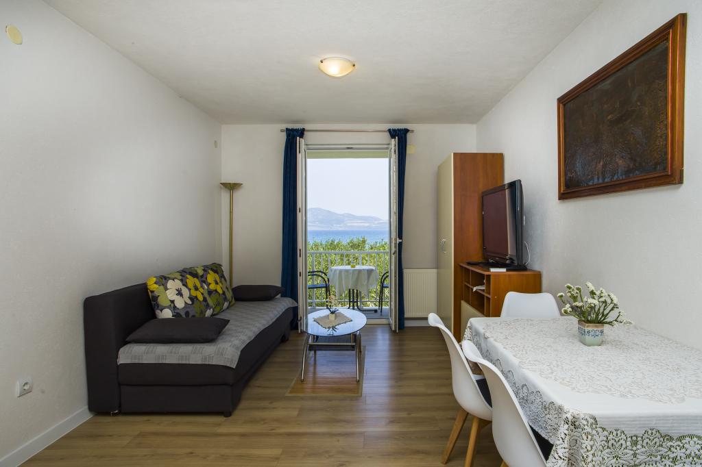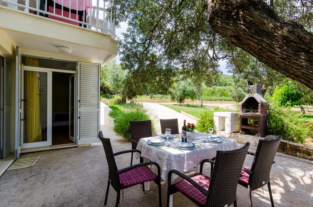 Дом расположен в 20 метрах от галечного пляжа с мелким песком. Он расположен в 500 метрах от деревни Драче (80 км от Дубровника) и окружен большой оливковой рощей (6000 м²). На первом этаже расположены три квартиры, а на втором — одна. К услугам гостей бесплатный Wi-Fi и два барбекю (большой общий и небольшой отдельный для апартаментов A1). Для всех автомобилей предусмотрена парковка. Во всех апартаментах есть стиральная машина. ВСЕ АПАРТАМЕНТЫ ОБОРУДОВАНЫ КОНДИЦИОНЕРАМИ.