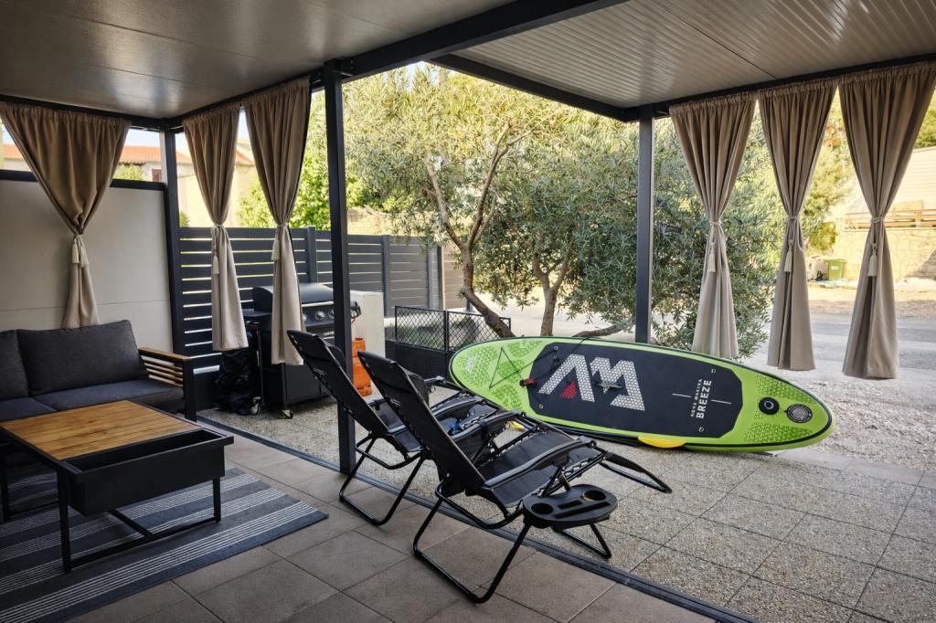 Откройте для себя идеальный отдых на море в наших очаровательных мобильных домах, расположенных всего в 70 метрах от пляжа Порат в тихой деревне Драге! Предлагаются два дома, каждый из которых может вместить до 4 взрослых и 1 ребенка. В домах две спальни. В одной — двуспальная кровать размером 160x200 см, а в другой — двуспальная кровать размером 140x200 см. Кроме того, на диване-кровати может разместиться ребенок до 5 лет. Каждая комната оборудована удобными кроватями и постельным бельем, чтобы вы могли насладиться заслуженным отдыхом. Гостиная обставлена современной мебелью и оборудована телевизором, идеально подходящим для вечернего отдыха. Кухня полностью оборудована всей необходимой бытовой техникой, включая холодильник, плиту, кофеварку, чайник и микроволновую печь. Насладитесь утренним кофе или вечерним напитком на просторной террасе площадью 24 м²! Пожалуйста, отправляйте все запросы исключительно через форму обратной связи!