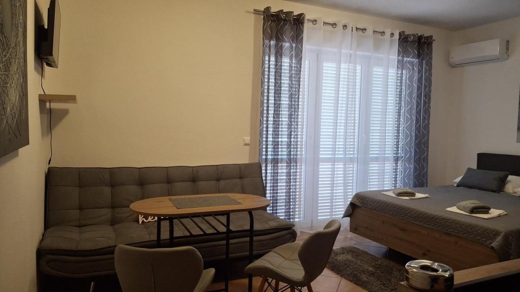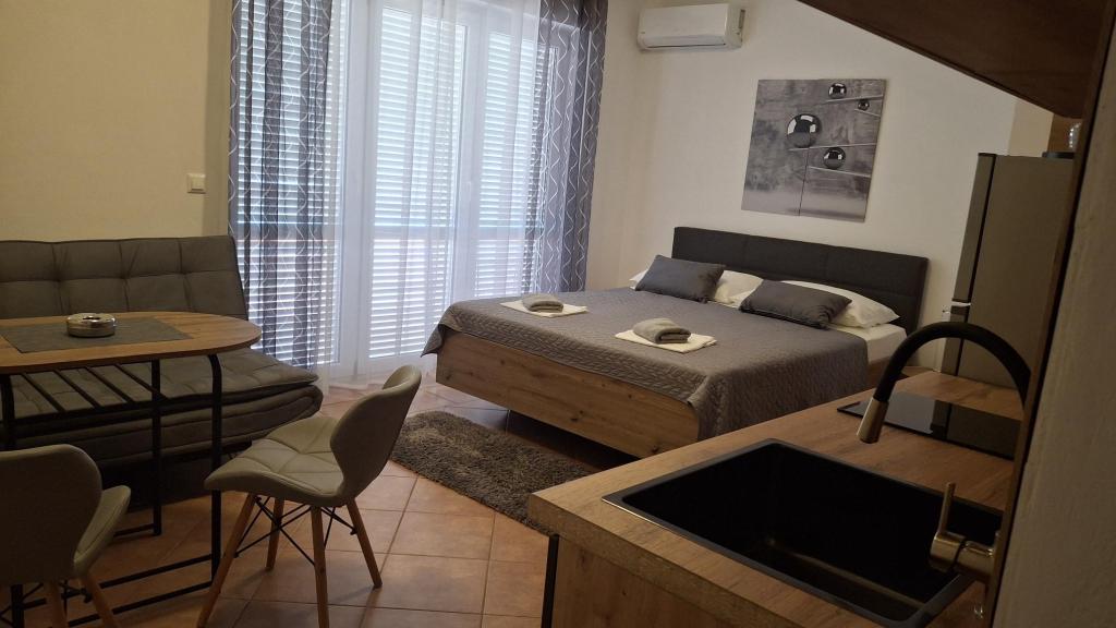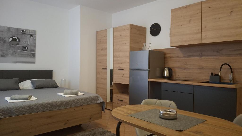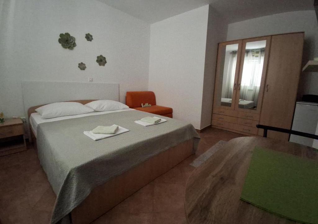 Для отдыха от повседневной жизни и суеты мы предлагаем квартиры-студии или комнаты на ваш выбор в новом семейном здании с видом на море. Ваше жилье находится в 4-5 минутах езды до города, а до пляжа 3-4 минуты. В апартаментах есть возможность использования гриля на открытом воздухе, и они находятся недалеко от торговых центров Duga Mall и Lidl. С нами у вас всегда есть охраняемая парковка, что является самой большой проблемой любого туристического направления. Возможность использования кондиционера за дополнительную плату 5 евро в сутки. Ваш приятный отдых на нашем объекте - наша самая большая задача.