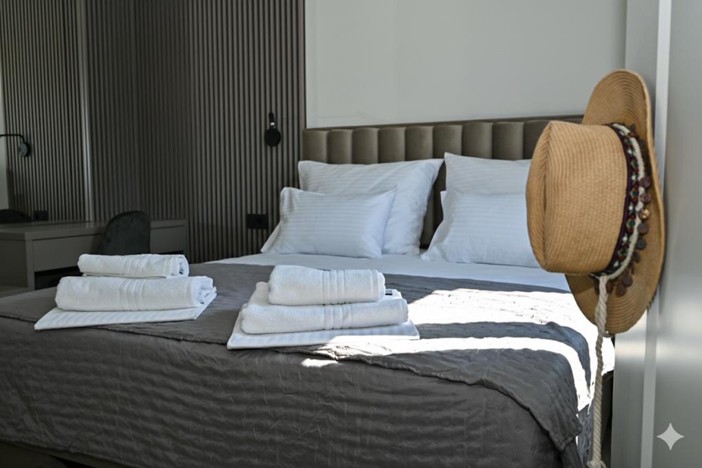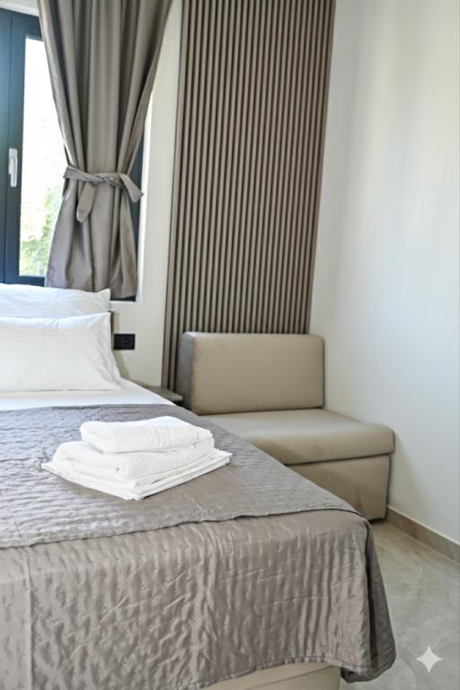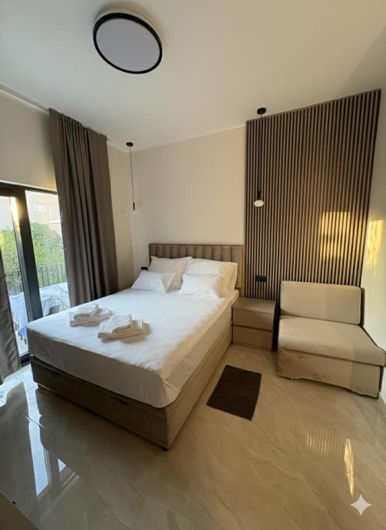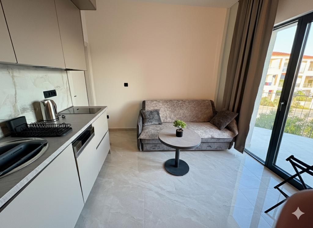 Насладитесь роскошью наших полностью отремонтированных апартаментов, оформленных в соответствии со стандартами 4-звездочного отеля. Расположенные в тихом районе города, они предлагают идеальный отдых в тишине и покое, всего в нескольких минутах ходьбы от самых красивых пляжей, ресторанов и кафе. Что мы предлагаем: Первоклассные удобства: современный интерьер, кондиционер, высокоскоростной интернет и телевизор с широким выбором каналов. • Чистота и элегантность: высокий уровень гигиены и тщательно продуманный дизайн для вашего максимального комфорта. • Частная парковка: на территории отеля предусмотрено безопасное место для вашего автомобиля. • Гостеприимство: мы всегда готовы порекомендовать лучшие рестораны, экскурсии и местные достопримечательности. Примечание: курение и размещение с домашними животными в отеле запрещены, что позволяет сохранить свежесть и качество воздуха для всех наших гостей. Насладитесь идеальным отдыхом в элегантности и тишине. Добро пожаловать!