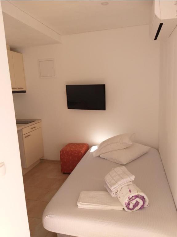 Апартаменты Kolumbo. Насладитесь отдыхом в апартаментах Kolumbo, идеально расположенных всего в минуте ходьбы от прекрасного галечного пляжа, главной площади, пиццерий и кафе. Комплекс предлагает три номера. Все номера одинаково оборудованы и включают в себя: кондиционер и бесплатный Wi-Fi; спутниковое телевидение; собственную ванную комнату; оборудованную кухню с плитой, микроволновой печью, чайником и холодильником. Планировка номеров: Первый этаж: Два апартамента с удобным доступом. Второй этаж: Апартаменты с террасой и видом на море. Для всех гостей предоставляется парковка. Эксклюзивное преимущество в нашем ресторане: Наши гости получают 10% скидку на обед и ужин в нашем семейном ресторане Marina Restaurant. Насладитесь свежими местными деликатесами по более доступной цене.