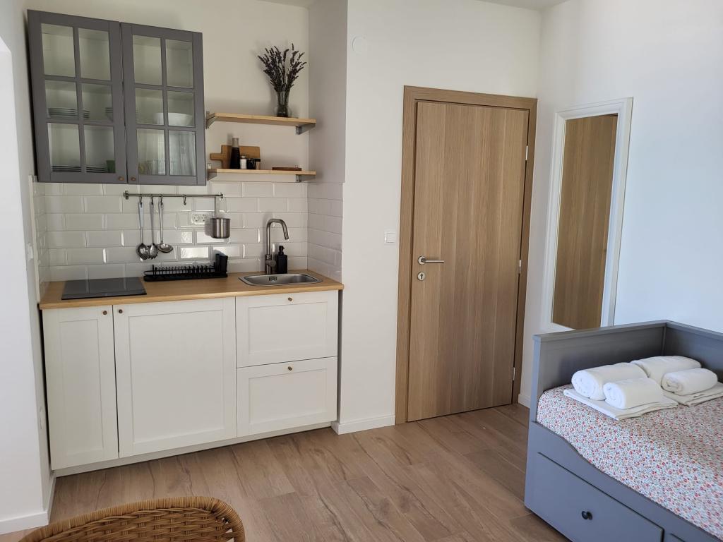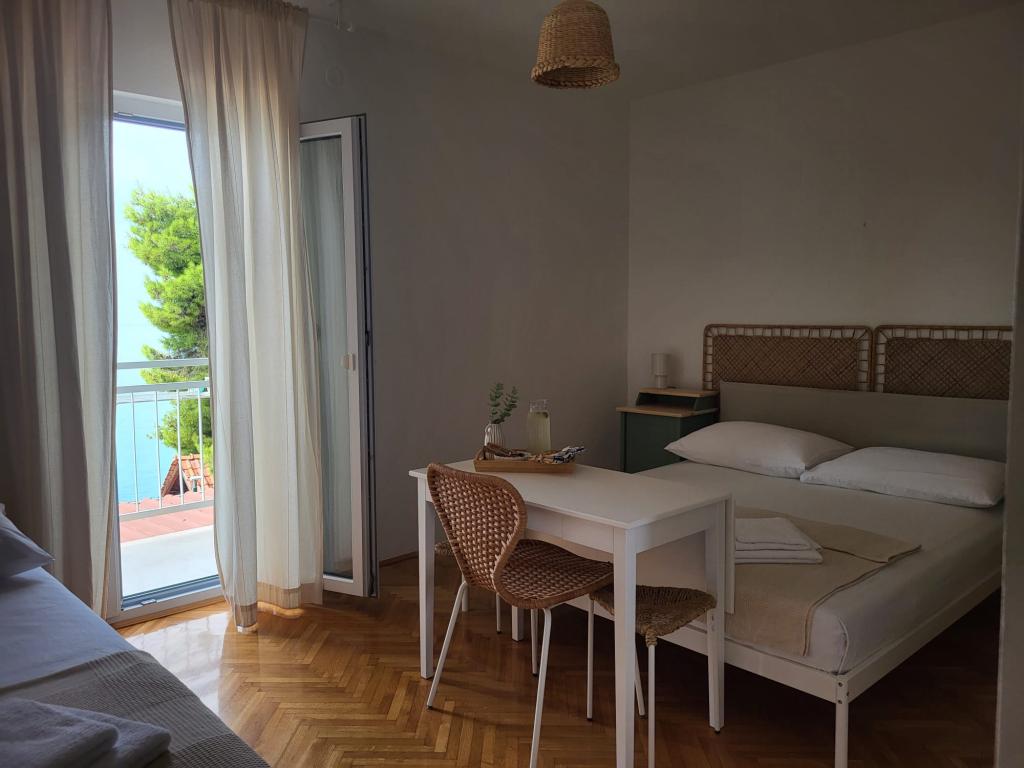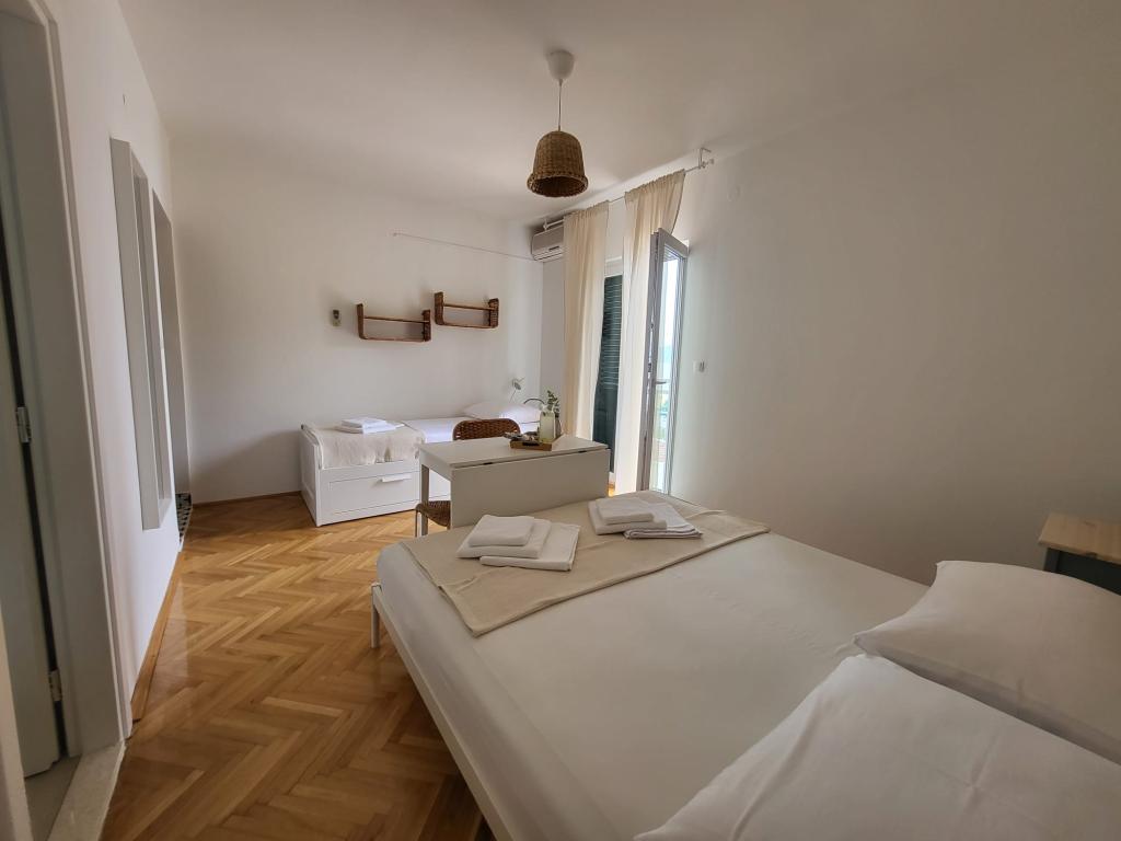 Наш семейный дом расположен в первом ряду от моря, прямо рядом с прекрасным пляжем с естественной тенью, идеально подходящим для беззаботного отдыха. Дом находится в тихом районе Градаца, идеально подходящем для семей с детьми и пар, ищущих спокойствия, умиротворения и настоящей средиземноморской атмосферы. Мы предлагаем нашим гостям 6 полностью обновленных номеров: - 3 современных номера-студии, каждый с собственным балконом; - 3 номера с собственными ванными комнатами, также с собственными балконами, и общей современной полностью оборудованной кухней. Все номера новые, светлые, уютные и спроектированы с особым вниманием к комфорту и деталям. В непосредственной близости от дома находятся кафе, рестораны, пекарня и магазин, а до самого центра города можно легко дойти пешком за 7-8 минут.