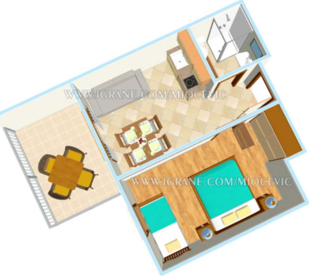 Полностью оборудованные и современные апартаменты Miočević расположены в тихом районе игр, всего в 20 метрах от центра и в 2 минутах ходьбы от пляжа. Квартиры являются совершенно новыми, кондиционер, Wi - Fi зона, и есть места для стоянки автомобилей поблизости. Здание имеет большой сад, окруженный цветами и зеленью. Ночью это очень тихо, потому что нет мест общественного питания в непосредственной близости. Хозяева имеют времени svokom к вашим услугам.
