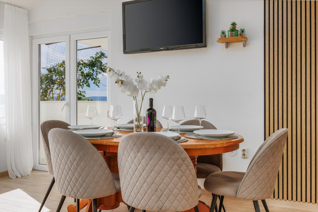 Проведите незабываемый отпуск в шестиместных апартаментах с великолепным панорамным видом на Игране и Адриатическое море! Описание квартиры: • Три отдельные спальни для максимального комфорта. • Полностью оборудованная кухня для приготовления ваших любимых блюд. • Просторная гостиная с панорамным видом на море и город. • Две современные ванные комнаты. • Большой балкон, идеально подходящий для отдыха на восходе солнца. • Телевизор, Wi-Fi и кондиционер для приятного отдыха. • Частная парковка перед домом. Расположен в живописном городе Игране, известном своими прекрасными пляжами, историческими достопримечательностями и богатым туристическим предложением. Забронируйте проживание и насладитесь тишиной, природой и красотой Макарской Ривьеры!