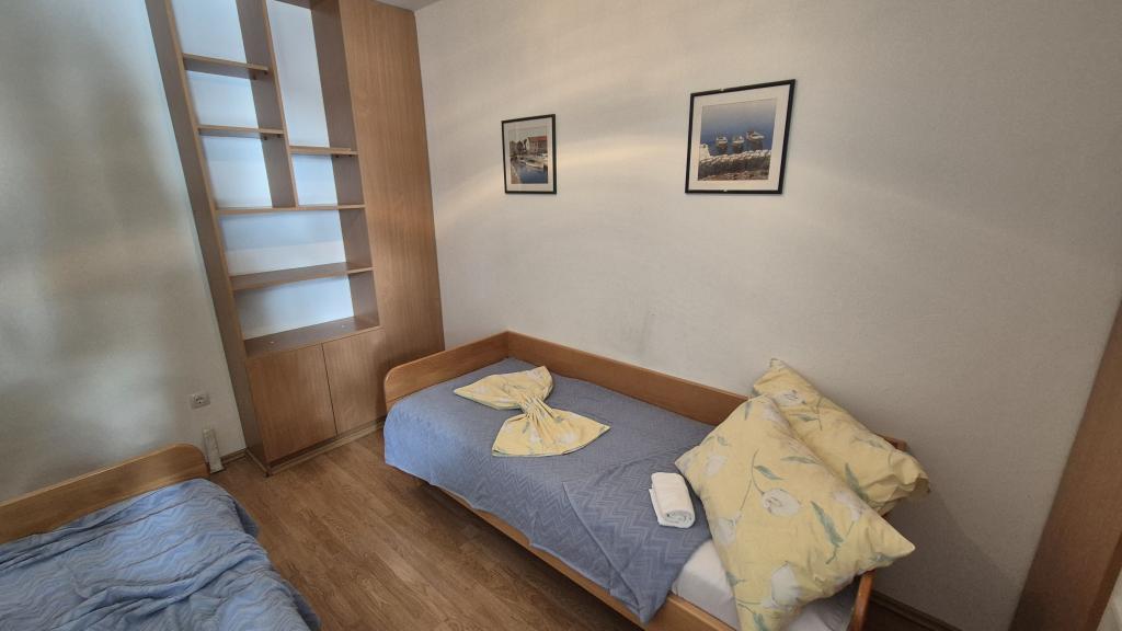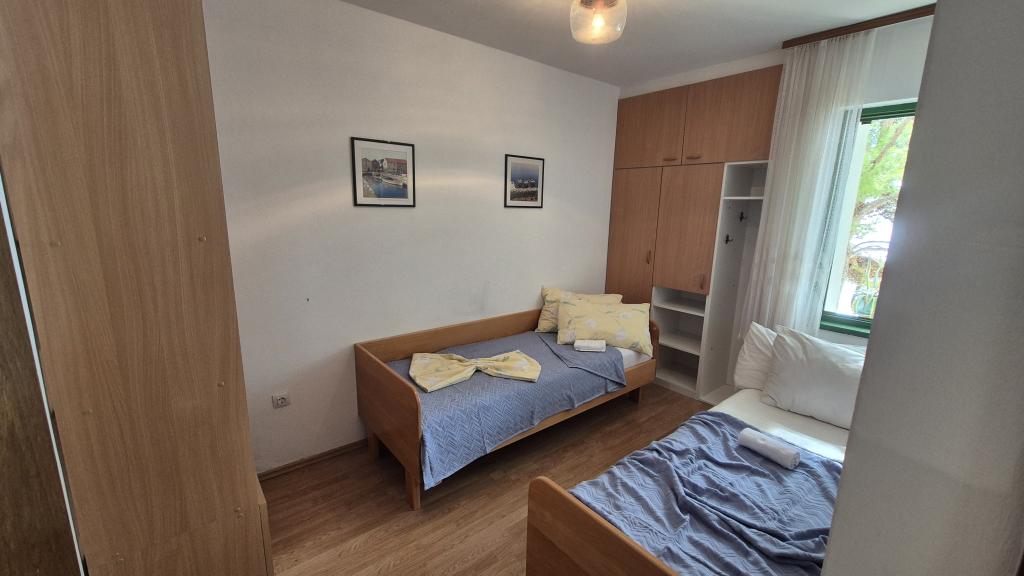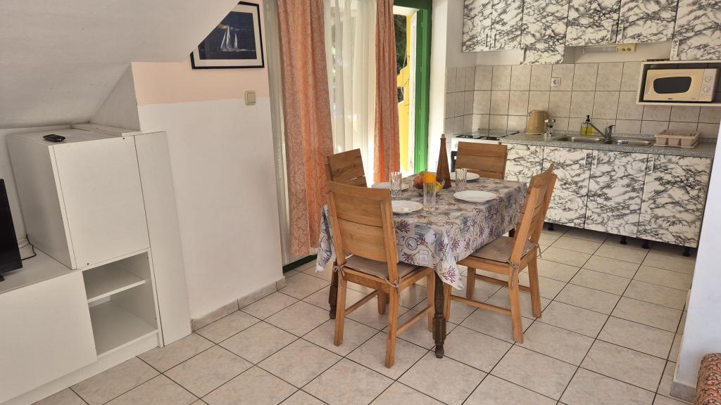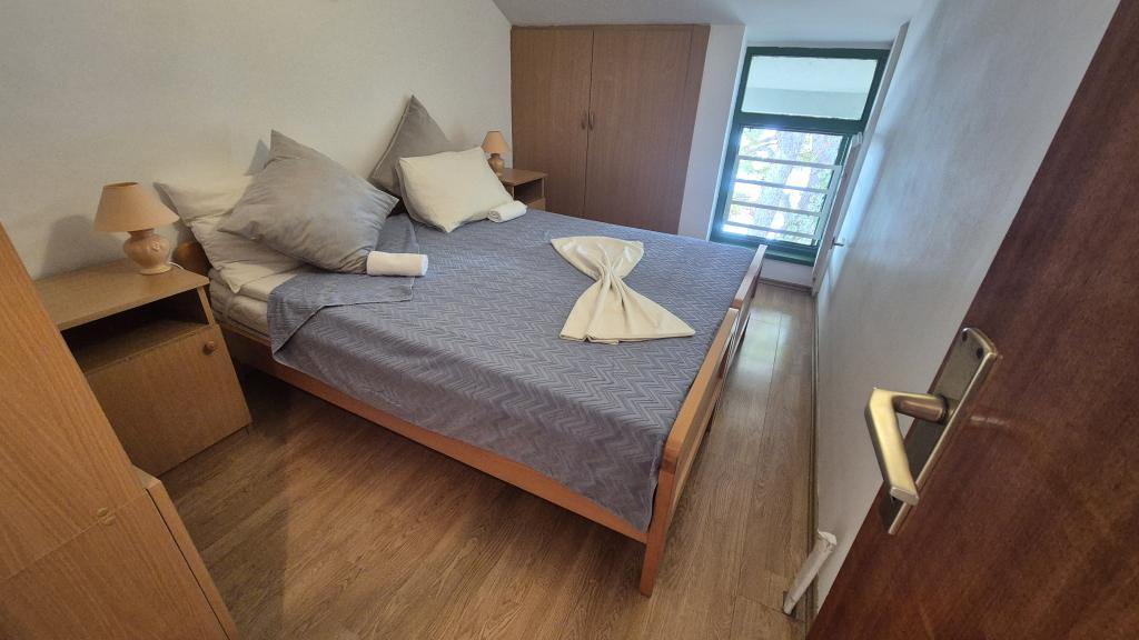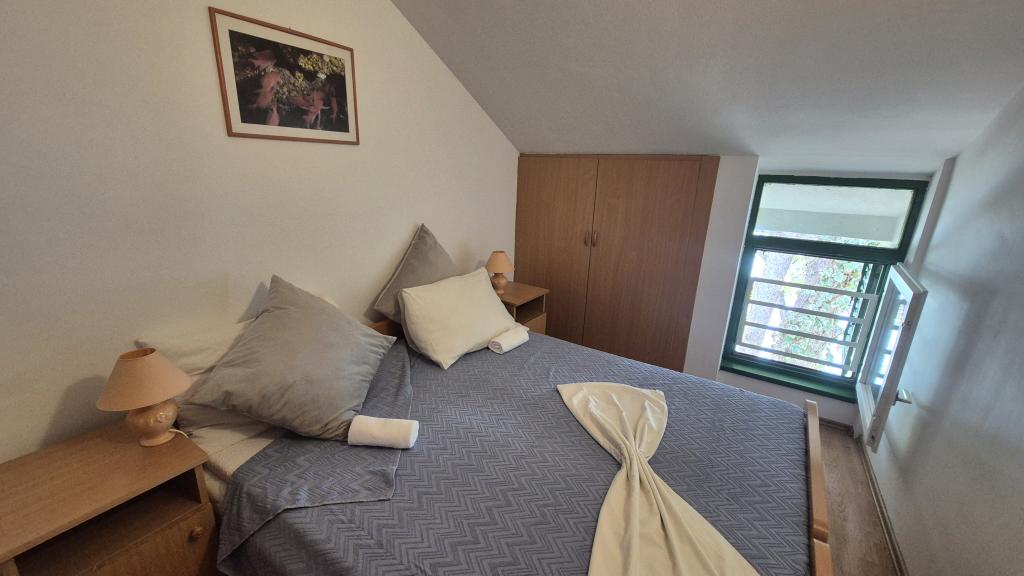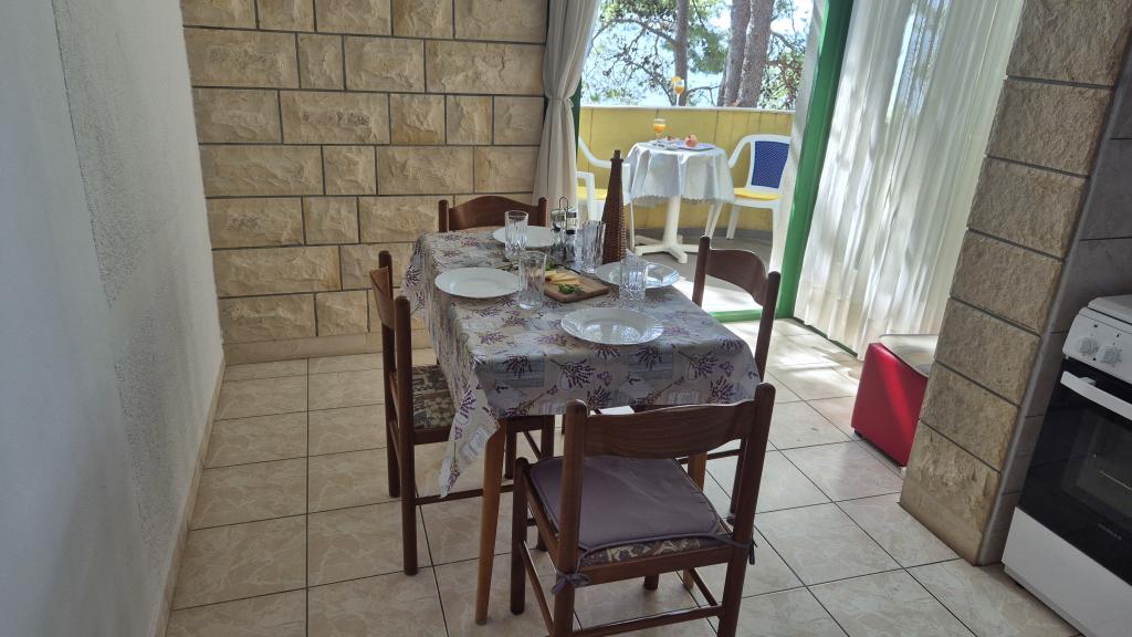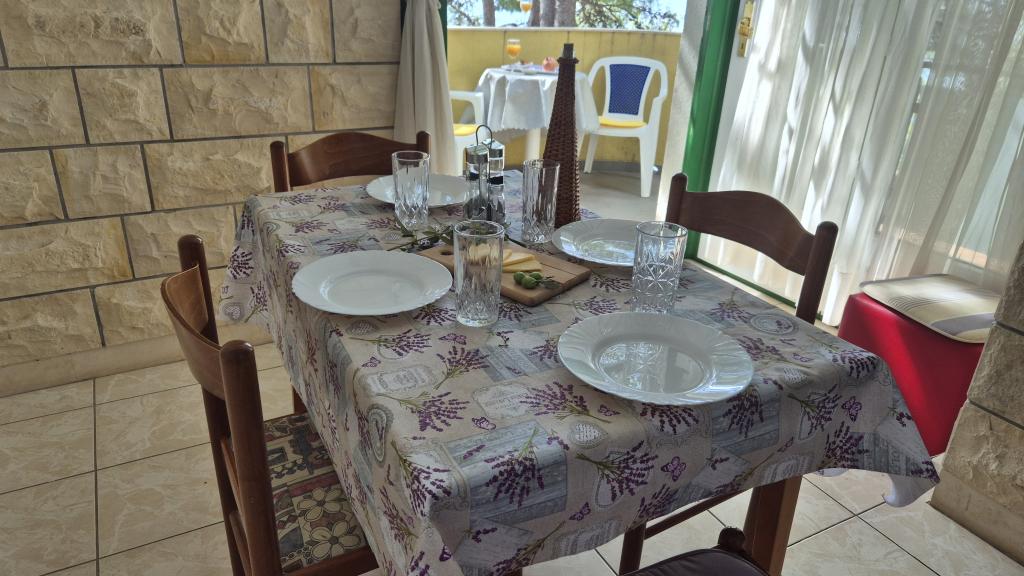 Квартиры Арпина расположены в густом сосновом лесу, в первом ряду от моря. В непосредственной близости от квартиры есть несколько галечных пляжей, а перед домом всего в 10 метрах находится каменный пляж. В отеле есть благоустроенный двор с шезлонгами и столами для гостей с открытым видом на море. Гости могут пользоваться парковкой и грилем, а по запросу можно воспользоваться стиральной машиной и детской кроваткой. Размещение состоит из 5 квартир общей вместимостью до 18 человек. Все апартаменты имеют вид на море, оснащены кондиционерами и оборудованы кухней, а во всем здании доступен WI-FI Интернет.