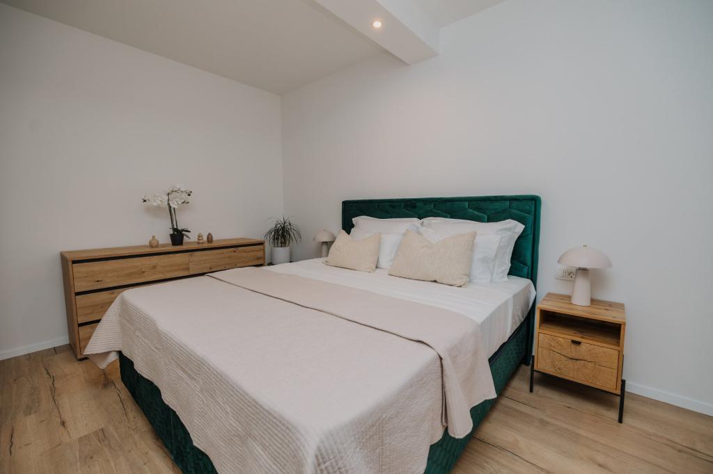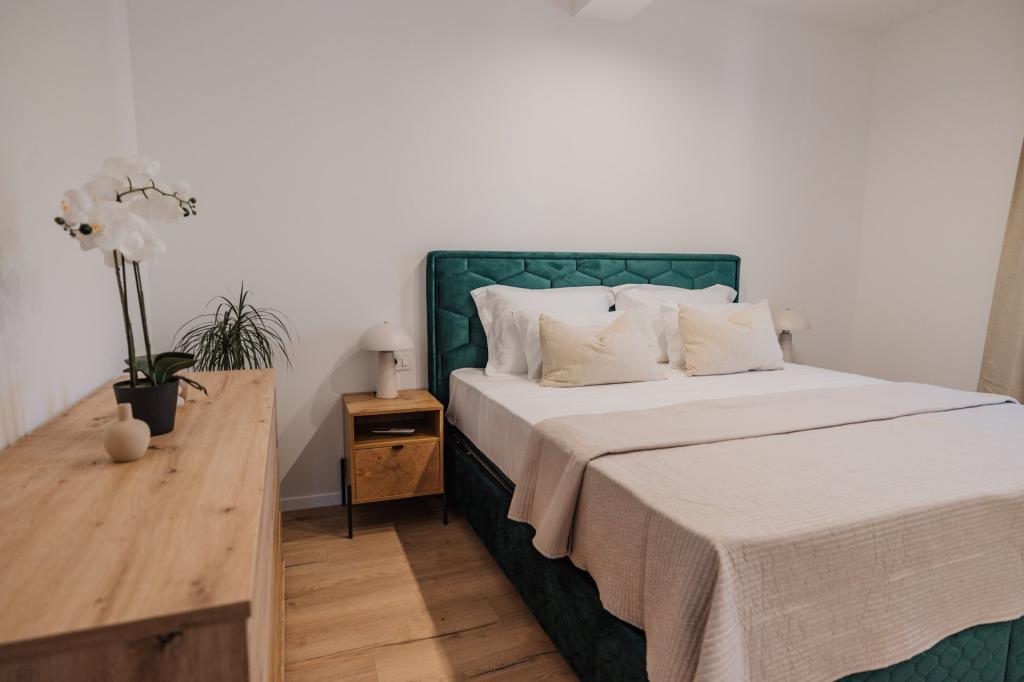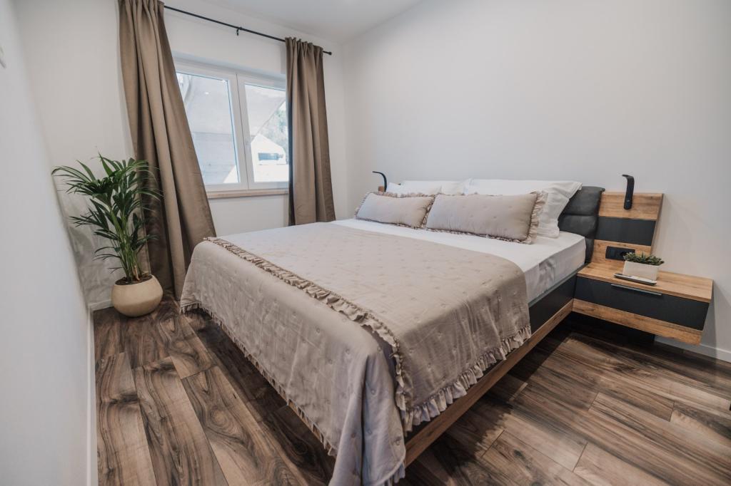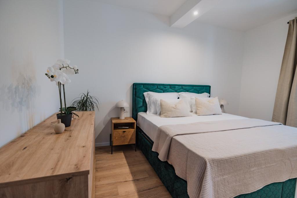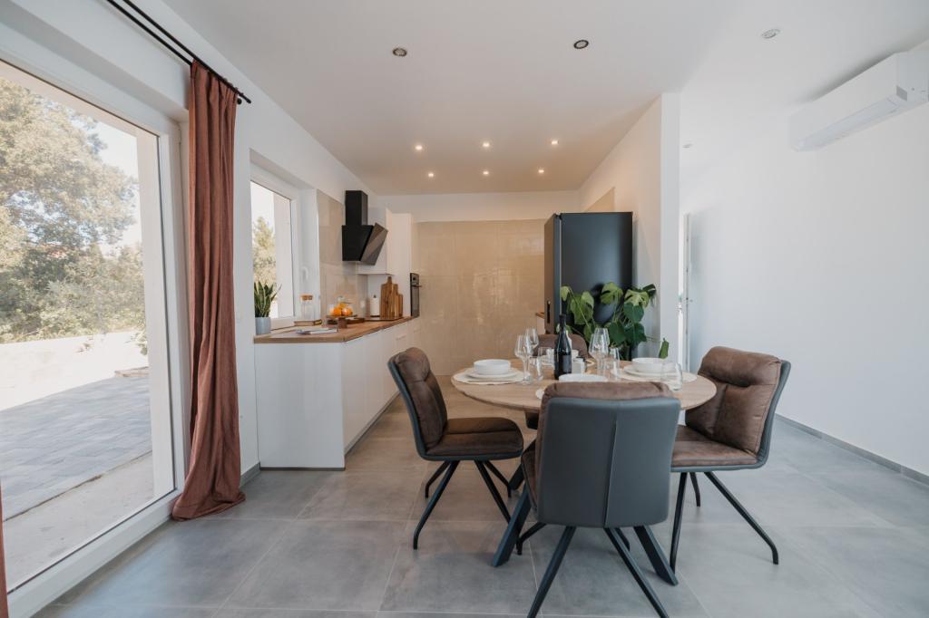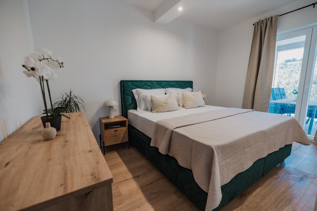 В Лумбарде, на острове Корчула, сдаются в аренду недавно отремонтированные и современно оборудованные апартаменты, расположенные в аутентичной атмосфере просторной оливковой рощи, что гарантирует гостям абсолютную приватность и покой. Апартаменты площадью 75 квадратных метров включают две спальни и два санузла, а также особое внимание уделено экстерьеру, который включает большую террасу площадью 35 квадратных метров и сад площадью 100 квадратных метров, идеально подходящие для уединенного отдыха. Внутри апартаменты полностью оборудованы для комфортного проживания четырех человек, включая посудомоечную машину на кухне, стиральную машину в ванной, MaxTV и высокоскоростной интернет 5G. Для семей с маленькими детьми по запросу предоставляется детская кроватка. Расположение идеально сочетает в себе уединение и близость ко всем удобствам: первая бухта для купания находится всего в 200 метрах, центр города — в 800 метрах, а знаменитые большие песчаные пляжи — примерно в 2 километрах. Гостям предоставляется частная парковка на территории здания.