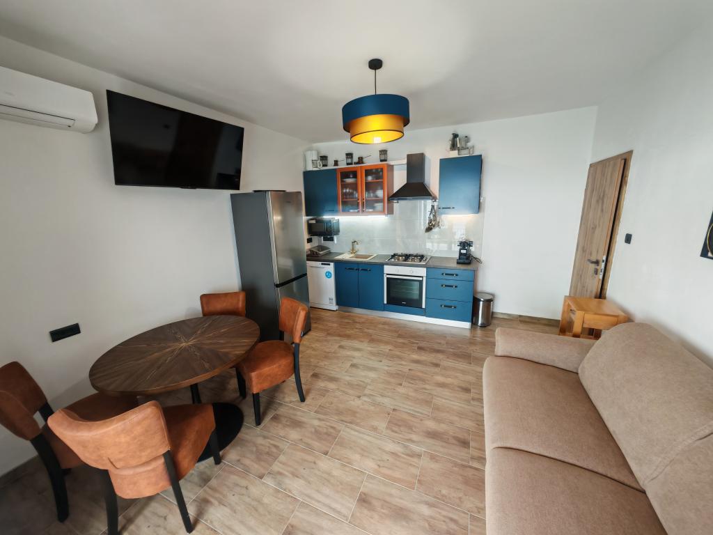 Апартаменты расположены прямо на берегу моря с видом на острова Црес и Лошинь, идеально подходящие для спокойного и расслабляющего отдыха без лишнего шума и суеты. Они полностью оборудованы. Центр города находится всего в 300 метрах, где вы найдете магазин, несколько ресторанов, кафе, фруктово-овощной магазин и банкомат. Песчаный пляж для детей находится в 200 метрах. Перед домом расположен небольшой зеленый оазис с богатым огородом, где гости могут самостоятельно выращивать овощи. К услугам гостей собственная парковка, открытая терраса с грилем на первом этаже, а при желании хозяева готовы организовать услуги повара. Шум запрещен до 9 утра и после 23:00. Расположенный в северной части острова Паг, богатого тысячелетними оливковыми деревьями, Лун является уникальным районом в этой части Средиземноморья. Более 80 000 оливковых деревьев раскинулись на площади 400 гектаров. Лун расположен недалеко от Новальи, рядом находятся острова Раб, Лошинь, Црес, Силба и 5 национальных парков. Ежедневно курсируют экскурсионные катера до острова Раб.
