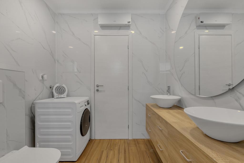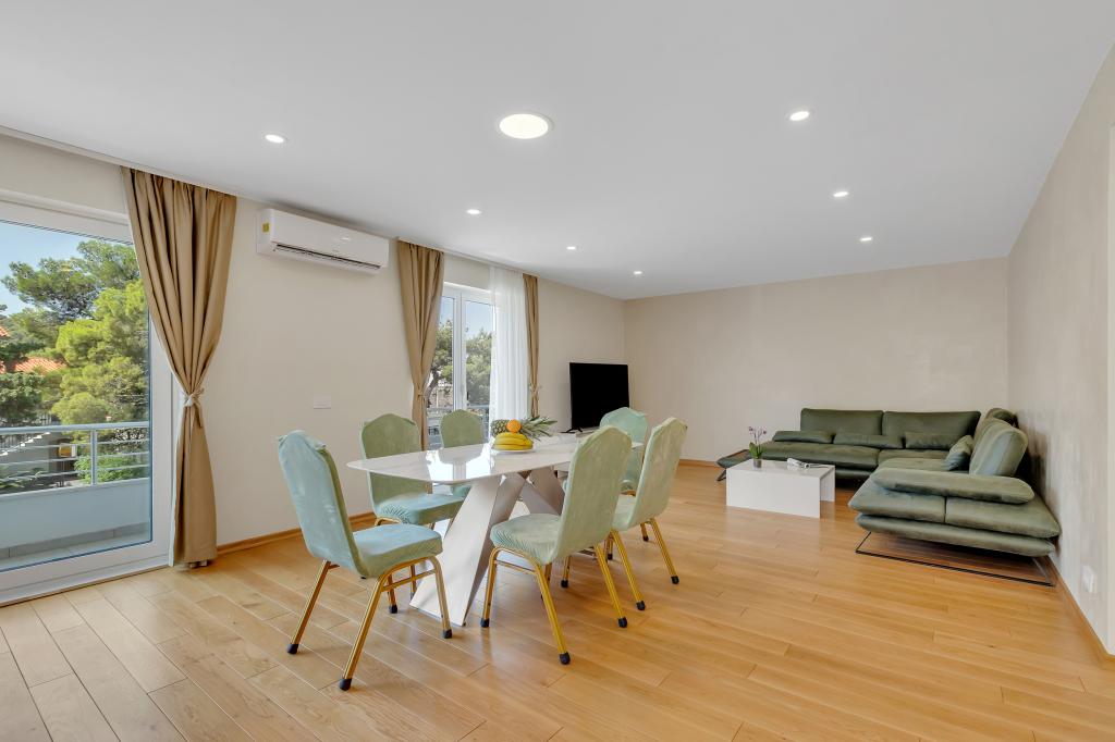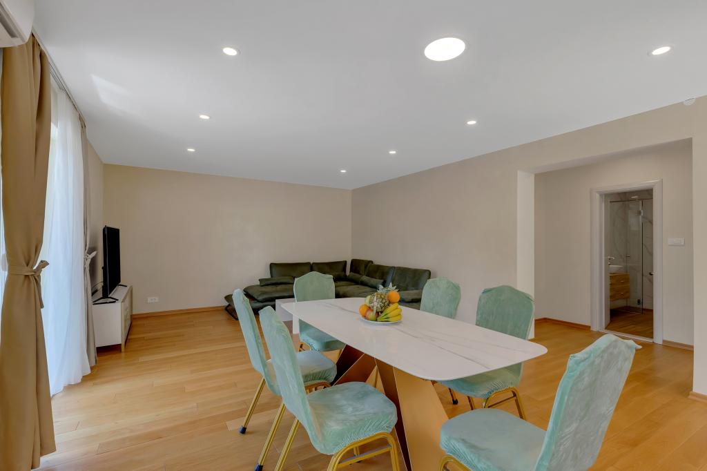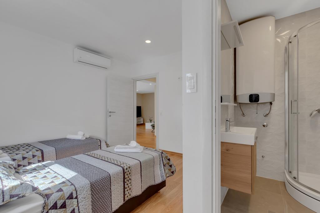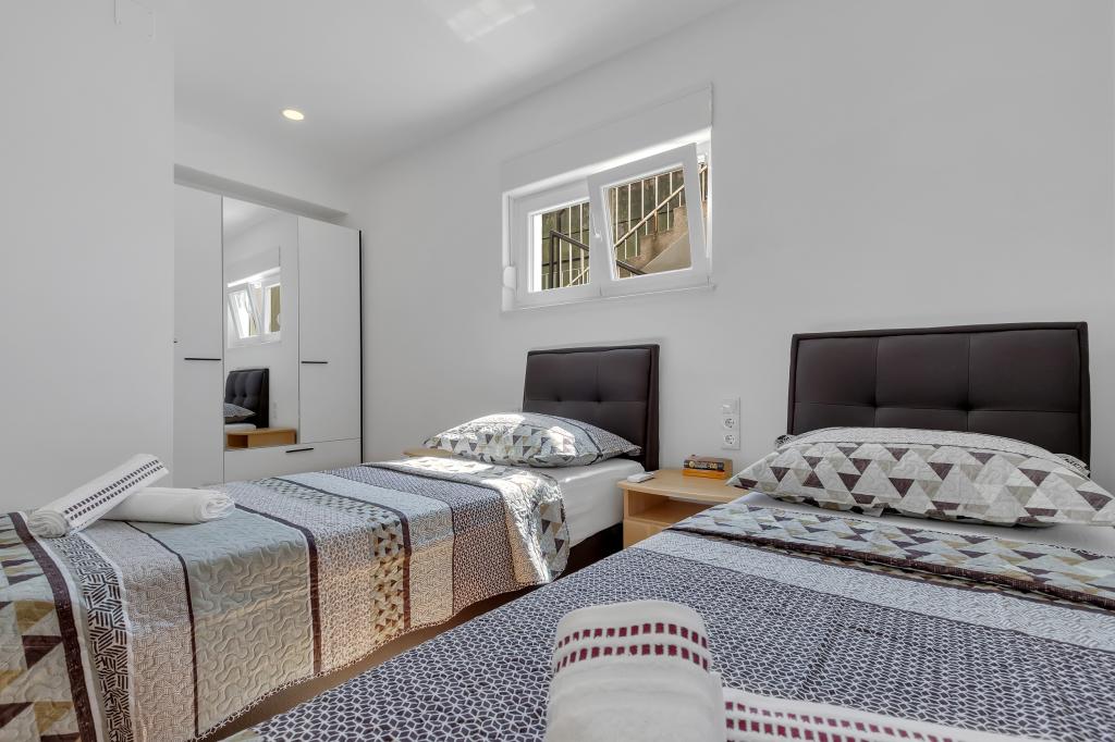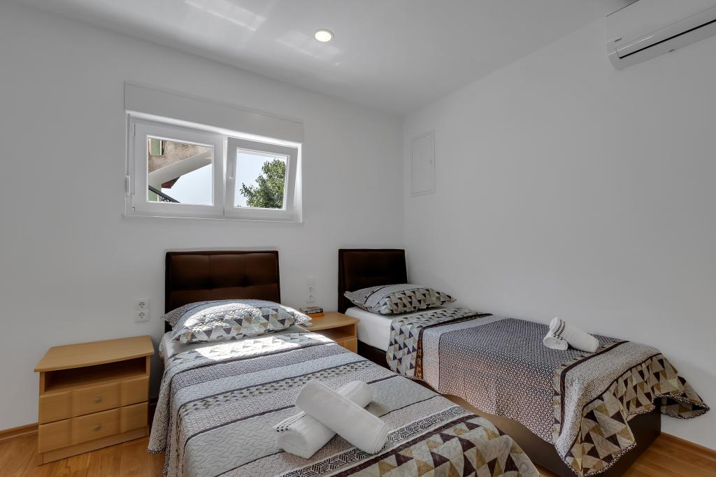 Полностью оборудованная квартира/квартира с двумя комнатами (двуспальная, кровать 180х200, а другая с 2x отдельными кроватями, которые при желании можно соединить), 2 ванными комнатами, большой гостиной с кухней (вместе 40м2). В квартире есть все необходимое для длительного проживания. и комфортное пребывание и расположен в центре Макарски