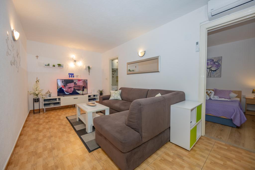Эти уютные апартаменты площадью около 40 м² предлагают все необходимое для приятного отдыха. Размещение включает в себя: Спальня с удобной двуспальной кроватью Гостиная с диваном-кроватью (подходит для 1 взрослого или 2 детей), Smart TV и кондиционер, Полностью оборудованная кухня с посудомоечной машиной, микроволновой печью, кофеваркой и чайником, Ванная комната с душем и стиральной машиной Перед домом есть собственная терраса с обеденным столом. Также к вашим услугам общая зона барбекю - идеально для расслабляющих вечеров на свежем воздухе. Апартаменты идеально подходят для пар или небольших семей, которые ищут комфортное и хорошо оборудованное жилье в спокойной обстановке. Они предлагают идеальное сочетание покоя и комфорта, но при этом находятся всего в нескольких минутах езды от центра города. Наслаждайтесь расслабляющими моментами или исследуйте богатое предложение города с ресторанами, кафе и магазинами - все в пределах вашей досягаемости. Предоставляется парковочное место для двух автомобилей.