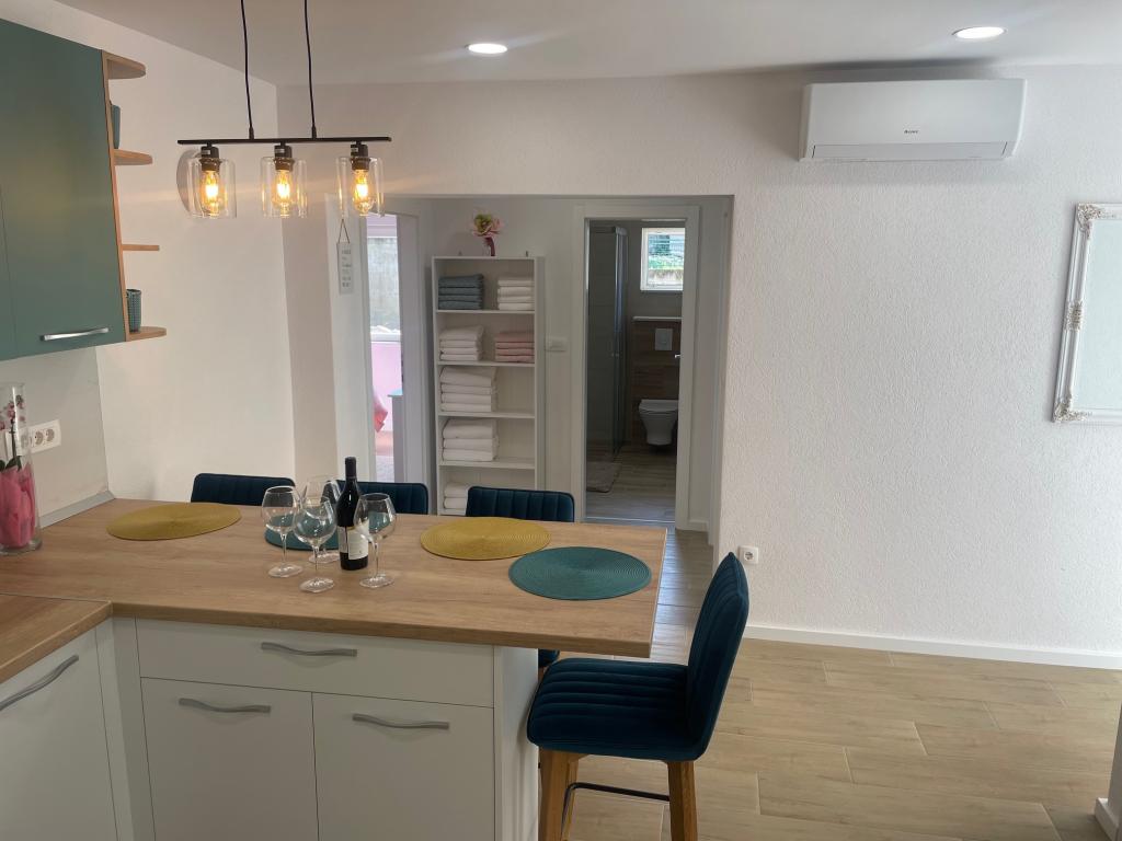 Полностью оборудованные апартаменты в самом центре города, в тихом районе. Апартаменты расположены в минуте ходьбы от главной городской площади (площади Качича), в непосредственной близости от апартаментов расположено множество магазинов и ресторанов. Пляж Осеява находится в 5 минутах ходьбы, а главный городской пляж — в 10 минутах ходьбы через набережную. Апартаменты City app 4 расположены на первом этаже дома, полностью отремонтированы и полностью оборудованы, с прилегающей террасой. Апартаменты City app 6 расположены на втором этаже того же дома, также полностью оборудованы, с прилегающим балконом и террасой. Для каждой квартиры предусмотрено одно парковочное место перед входом.