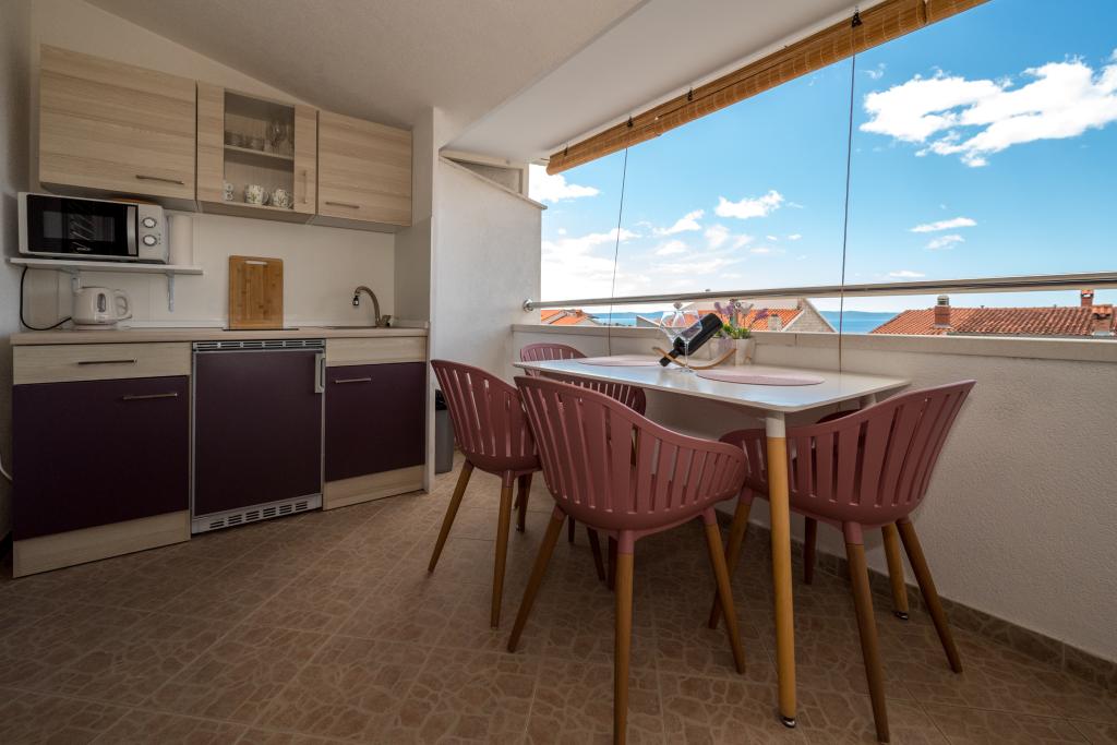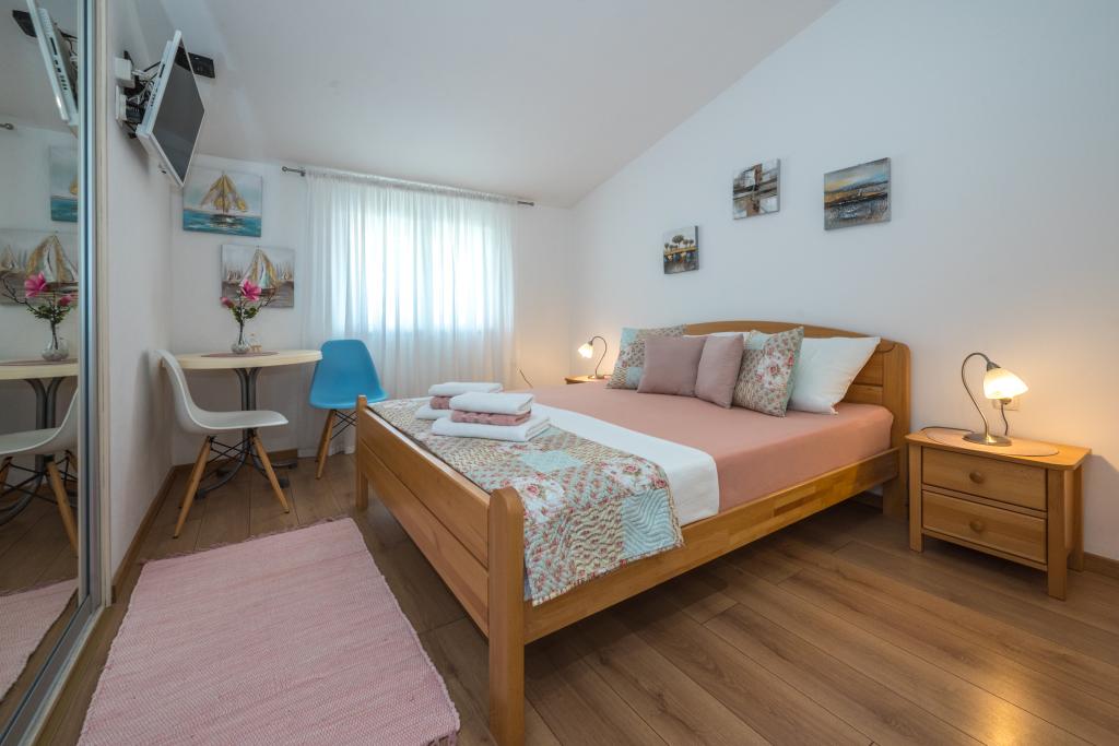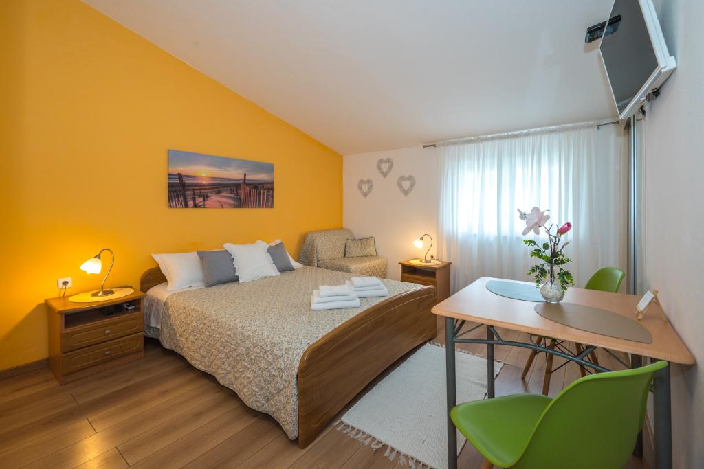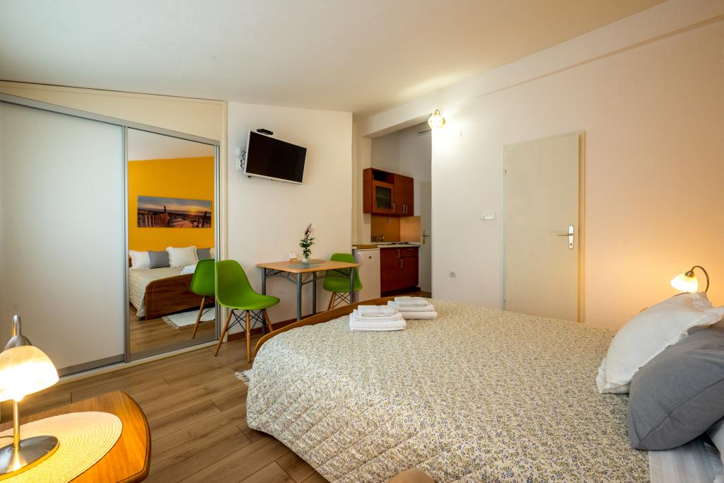 Комнаты аккуратные, современные, хорошо оборудованы и расположены на втором этаже семейного дома, перед которым находится двор для парковки автомобилей гостей. Сам дом расположен в красивом, очень туристическом районе Макарски, примерно в 90 м от городского пляжа, в радиусе 200 м от которого находятся 8 отелей. Хозяин имеет многолетний опыт работы в туристической индустрии. В 500 м от дома находится теннисный центр и аквапарк, в 800 м — главный городской парк со спортивно-развлекательными сооружениями, а в 1000 м — начало центра города. В 100 м находится дайвинг-центр, а на таком же расстоянии — отель «Биоковка», предлагающий крытые бассейны, сауны, тренажерные залы, физиотерапию и массаж. Среди близлежащих достопримечательностей — Музей раковин в городе, природный парк Биоково со знаменитой смотровой площадкой Skywalk, Красное и Голубое озера в Имотски, туристические прогулки на катере на остров и в город Корчула, а также знаменитый пляж Златни рат на острове Брач.