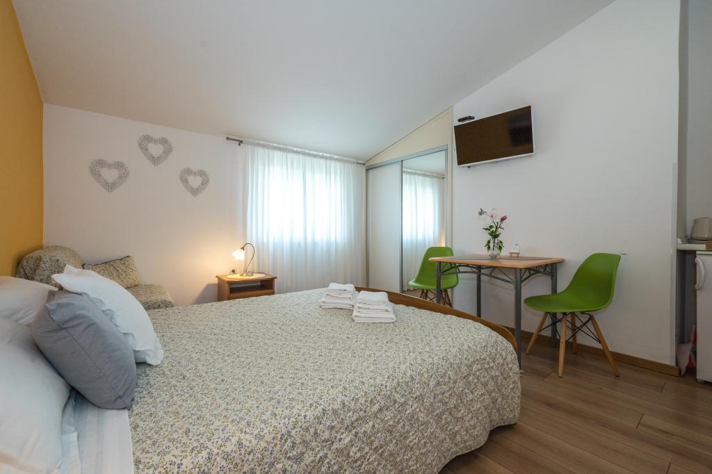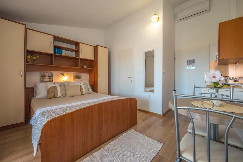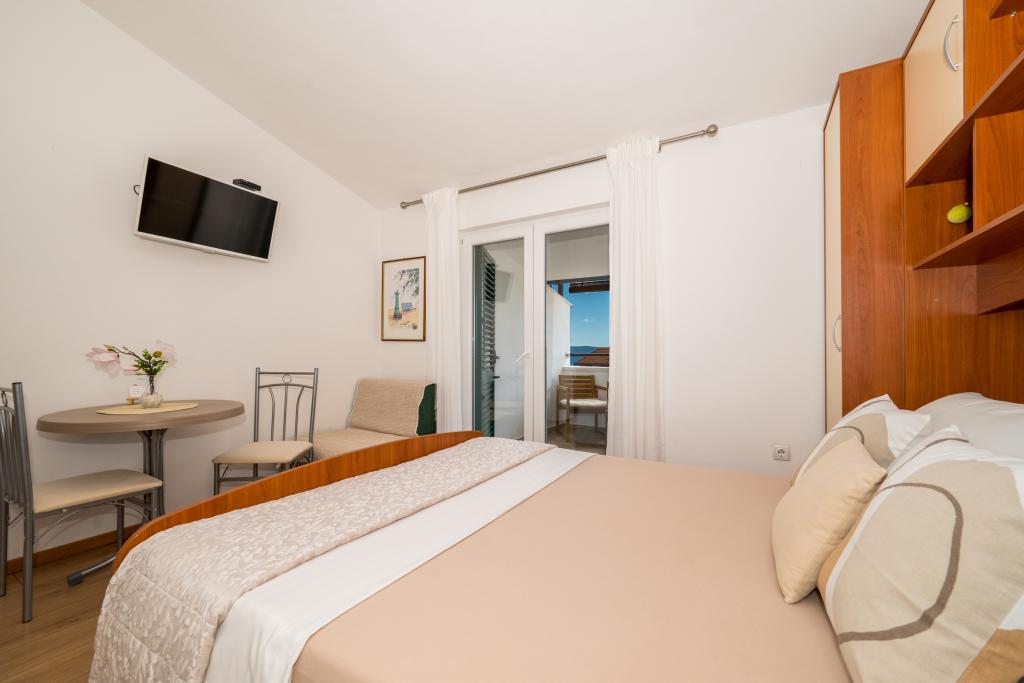 Комнаты аккуратные, современные, хорошо оборудованы и расположены на втором этаже семейного дома, перед которым находится двор для парковки автомобилей гостей. Сам дом расположен в красивом, очень туристическом районе Макарски, примерно в 90 м от городского пляжа, в радиусе 200 м от которого находятся 8 отелей. Хозяин имеет многолетний опыт работы в туристической индустрии. В 500 м от дома находится теннисный центр и аквапарк, в 800 м — главный городской парк со спортивно-развлекательными сооружениями, а в 1000 м — начало центра города. В 100 м находится дайвинг-центр, а на таком же расстоянии — отель «Биоковка», предлагающий крытые бассейны, сауны, тренажерные залы, физиотерапию и массаж. Среди близлежащих достопримечательностей — Музей раковин в городе, природный парк Биоково со знаменитой смотровой площадкой Skywalk, Красное и Голубое озера в Имотски, туристические прогулки на катере на остров и в город Корчула, а также знаменитый пляж Златни рат на острове Брач.