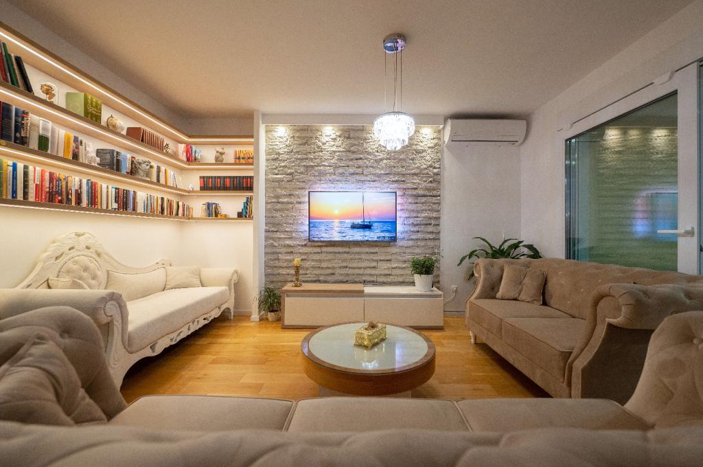 Пентхаусы Jure и Nikola в Макарске — это роскошные и просторные апартаменты площадью 135 м², идеально подходящие для комфортного и расслабляющего отдыха. Каждые апартаменты состоят из трех элегантно оформленных спален, двух современных ванных комнат, гаража и большой террасы с захватывающим видом на море и город, идеально подходящей для отдыха и расслабления. Расположенные в тихом районе, они находятся в 2 км от центра города и в 1 км от моря, обеспечивая идеальное сочетание уединенности и близости ко всем удобствам.