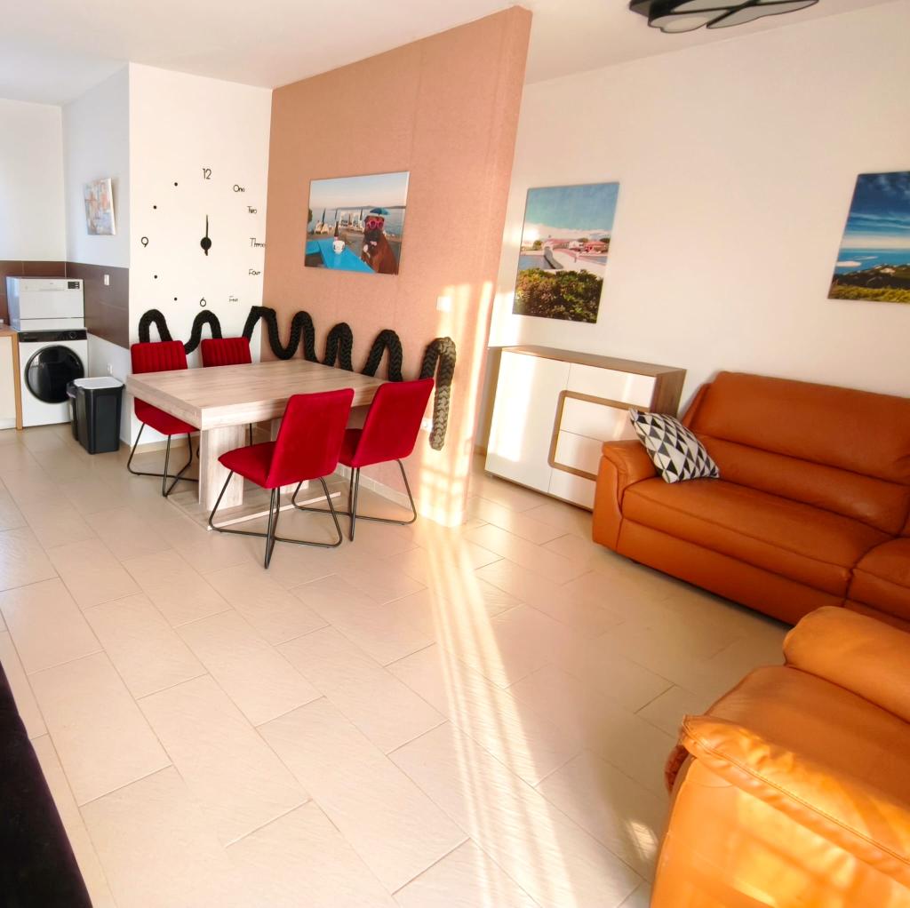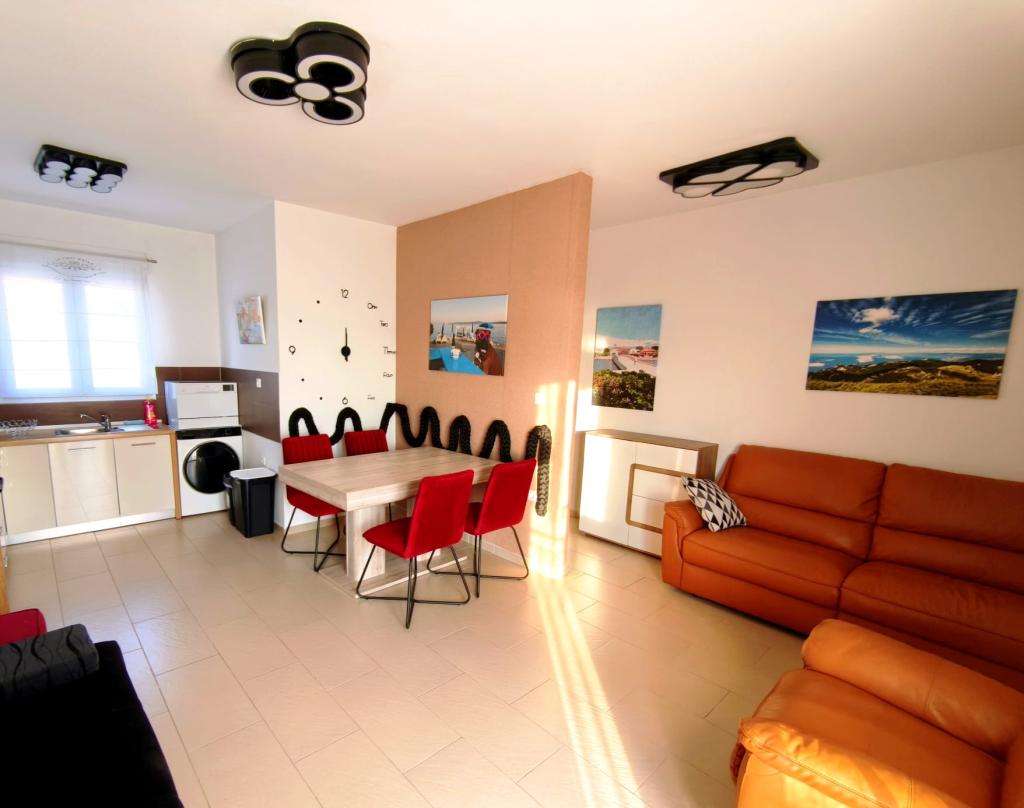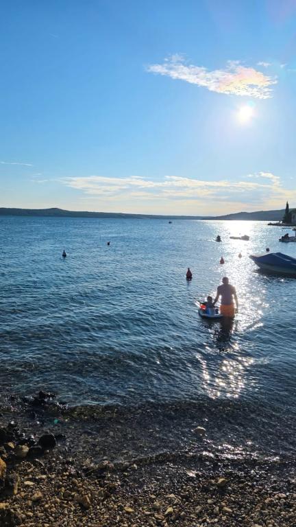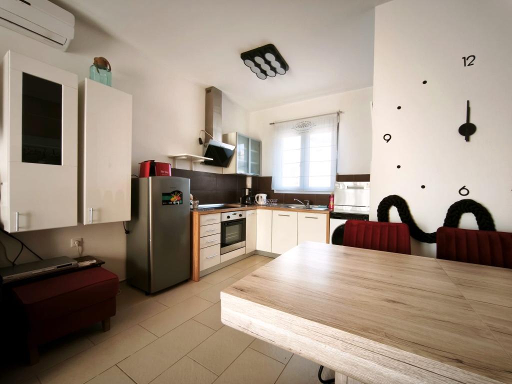 Полностью меблированная квартира, расположенная на первом этаже. Она состоит из одной спальни с двуспальной кроватью, кухни с обеденной зоной, туалета и гостиной с двумя диванами, один из которых можно расставить в дополнительную кровать. Также возможно размещение с домашними животными за дополнительную плату. У нас есть причал/буй, который наши гости могут использовать для швартовки своих небольших лодок.